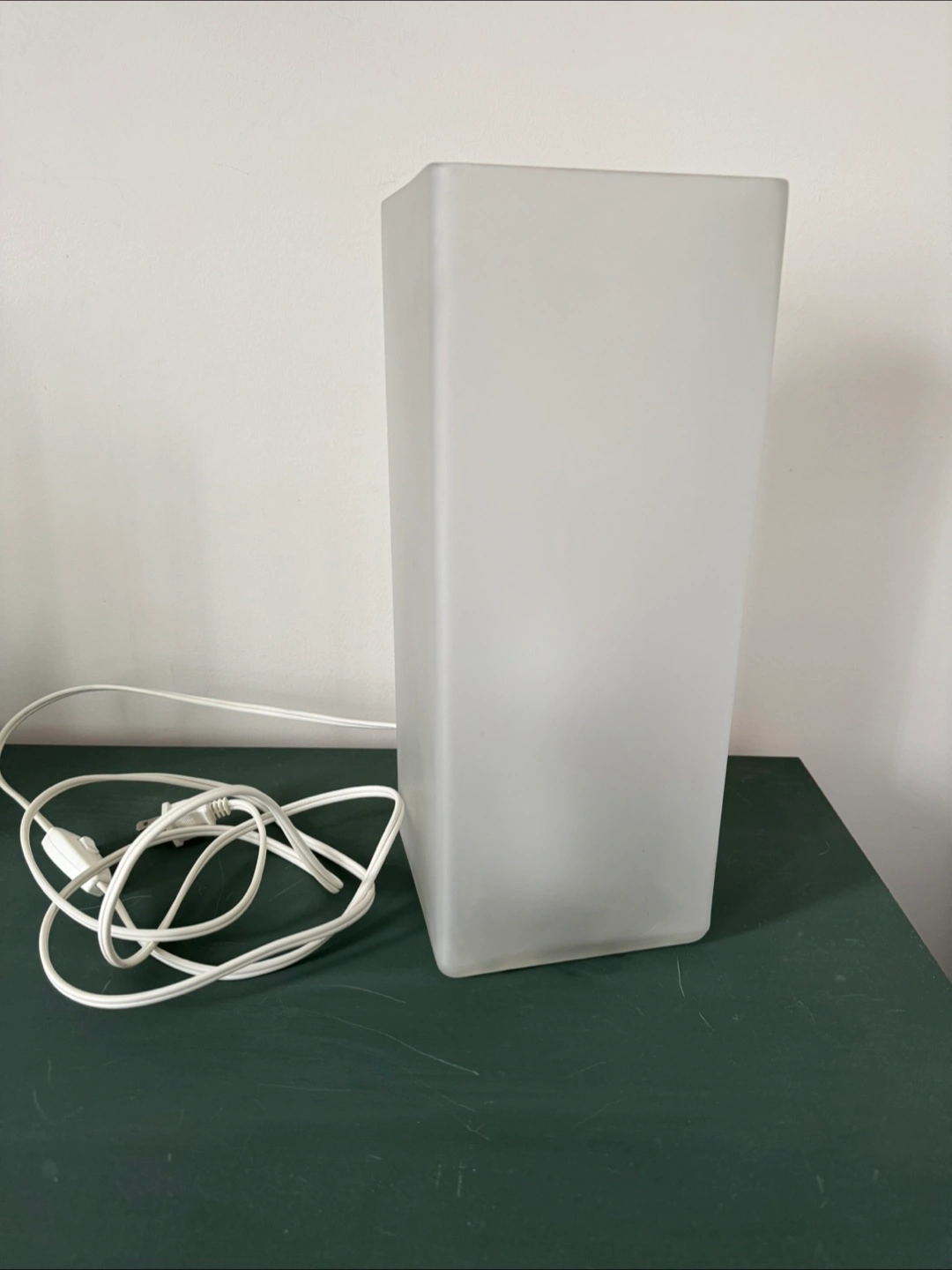Frosted lamp, works fine but may need a new bulb. 14” tall, 6x6” base Free, just come get it :)