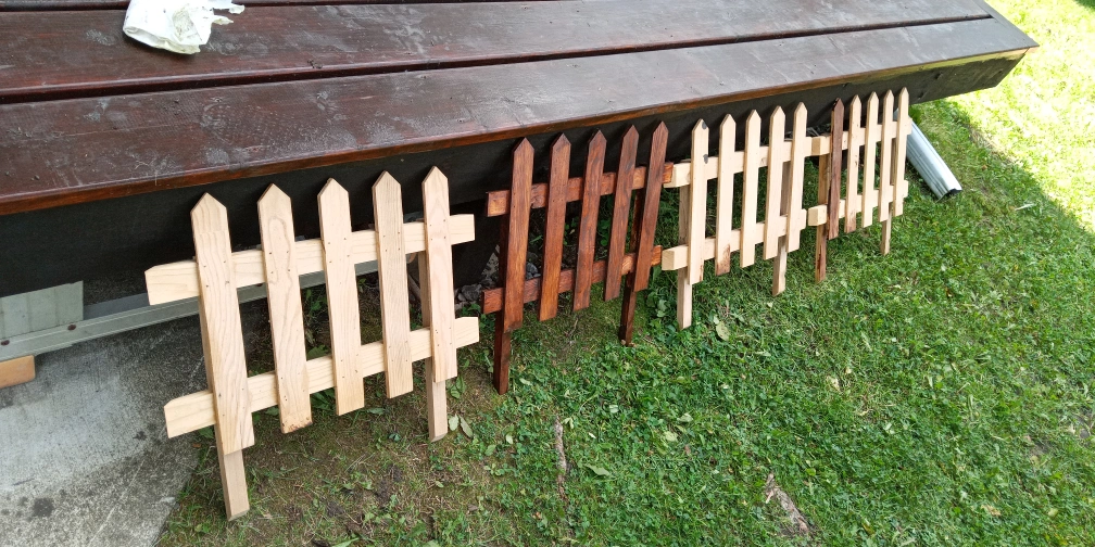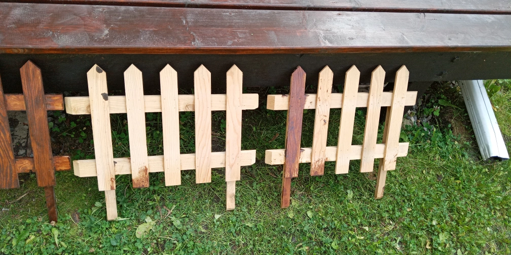 4 partily painted mini garden fences. Made from recut cedar and fir. Build for my wife, she was going to paint them but doesnt have time, anyways time goes by and things change I need the space. So if anyone wants to take these home for their garden Id be glad to see them go where theyll be used.