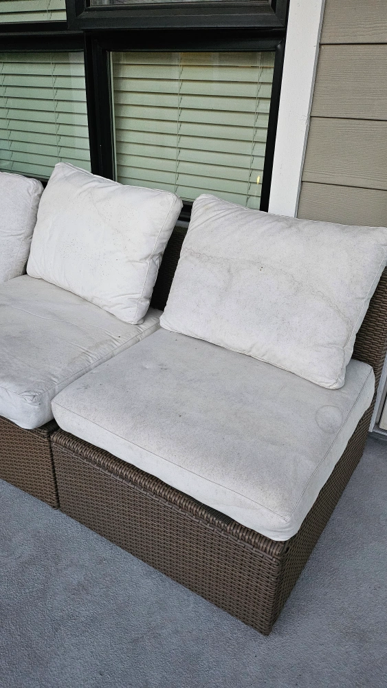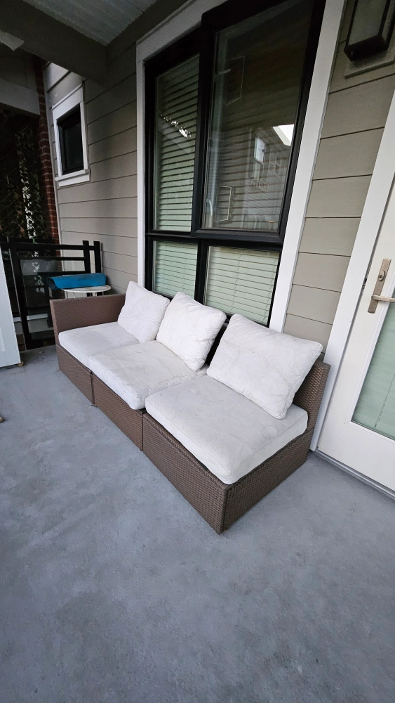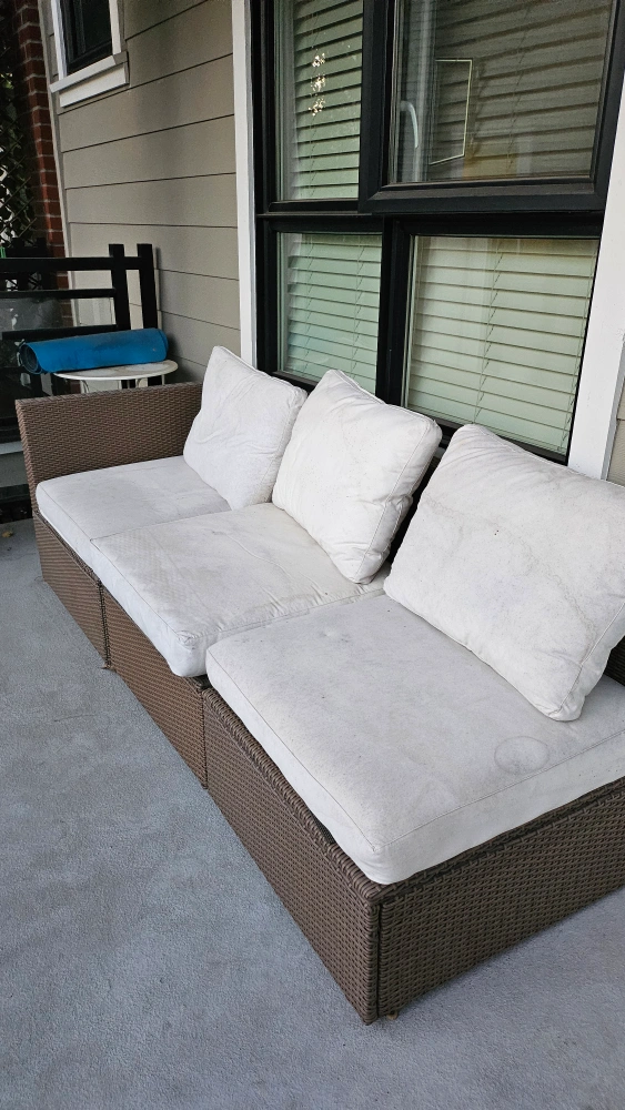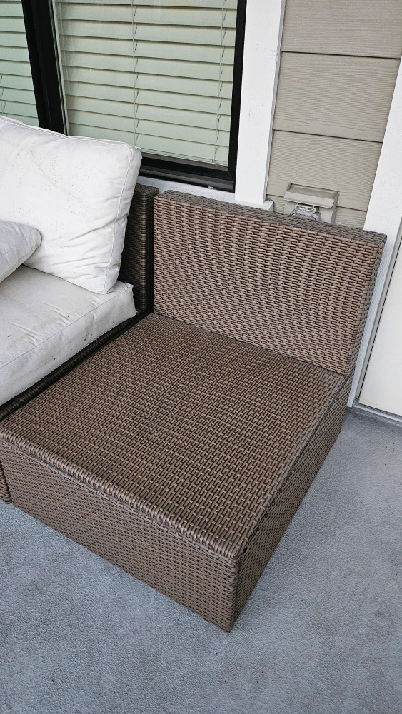 IKEA Rattan Patio Set with Cushions** giving away my beautiful IKEA rattan patio set, perfect for summer! can be used as chairs, a sofa, and a lounge, all in a stylish brown color and complete with cushions. - **Condition**: Good, cushions need machine wash - **Original Price**: $600 - **Features**: Comfortable cushions, durable rattan material - **Color**: Brown Ideal for outdoor lounging and entertaining. Don’t miss out on this great deal for your patio or garden! Contact me to arrange pickup time and location
