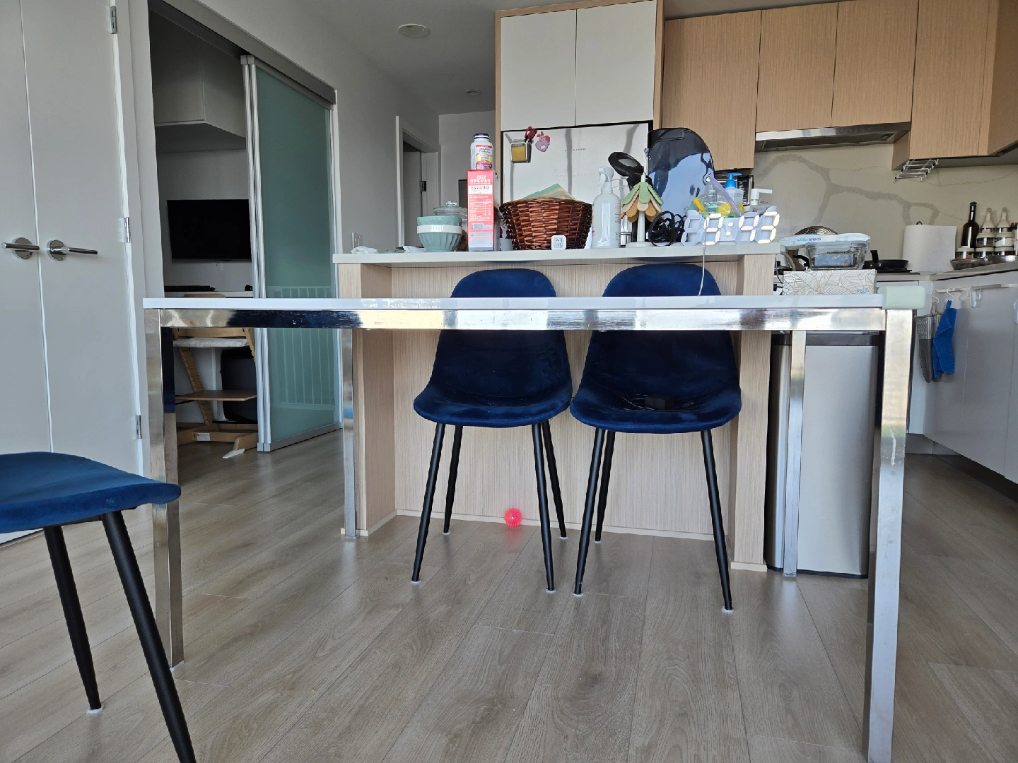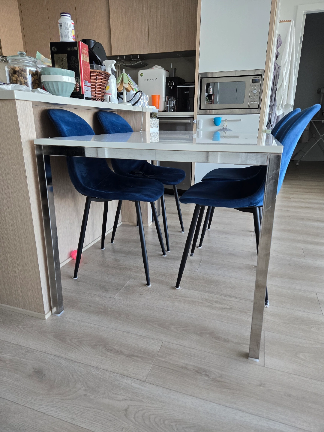 Dining Table with 4 Grey Velvet Chairs