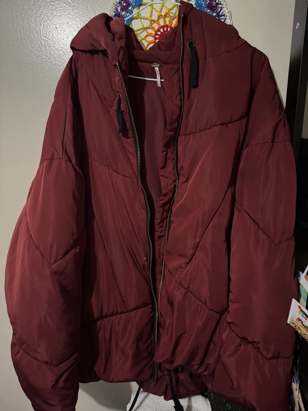 Selling a Free People maroon puffer jacket in size medium. It's in good condition. RFS: Decluttering