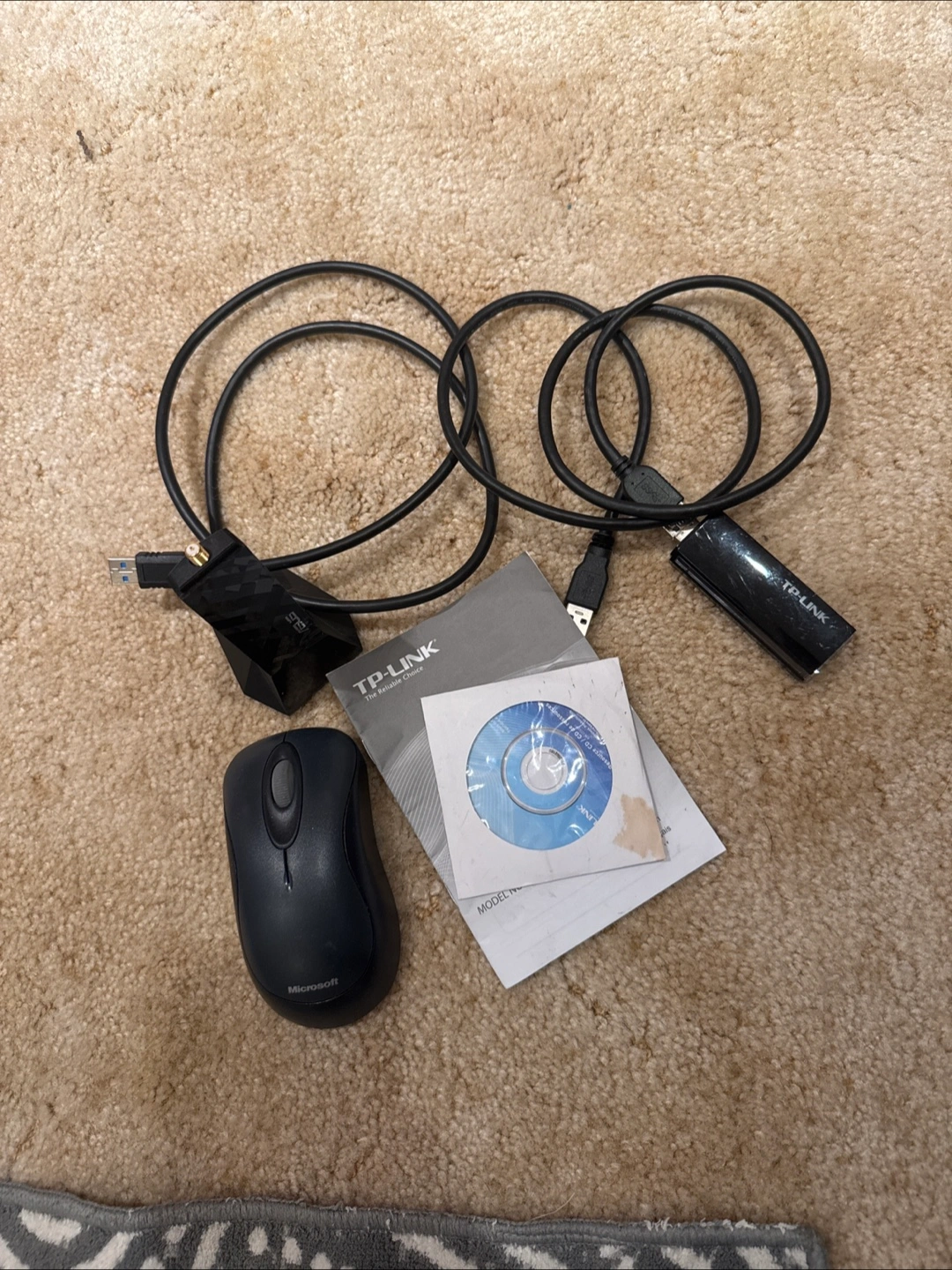 Selling a TP-Link USB adapter and a Microsoft mouse. Includes the driver CD and cables. Great for anyone needing a reliable wireless setup!
