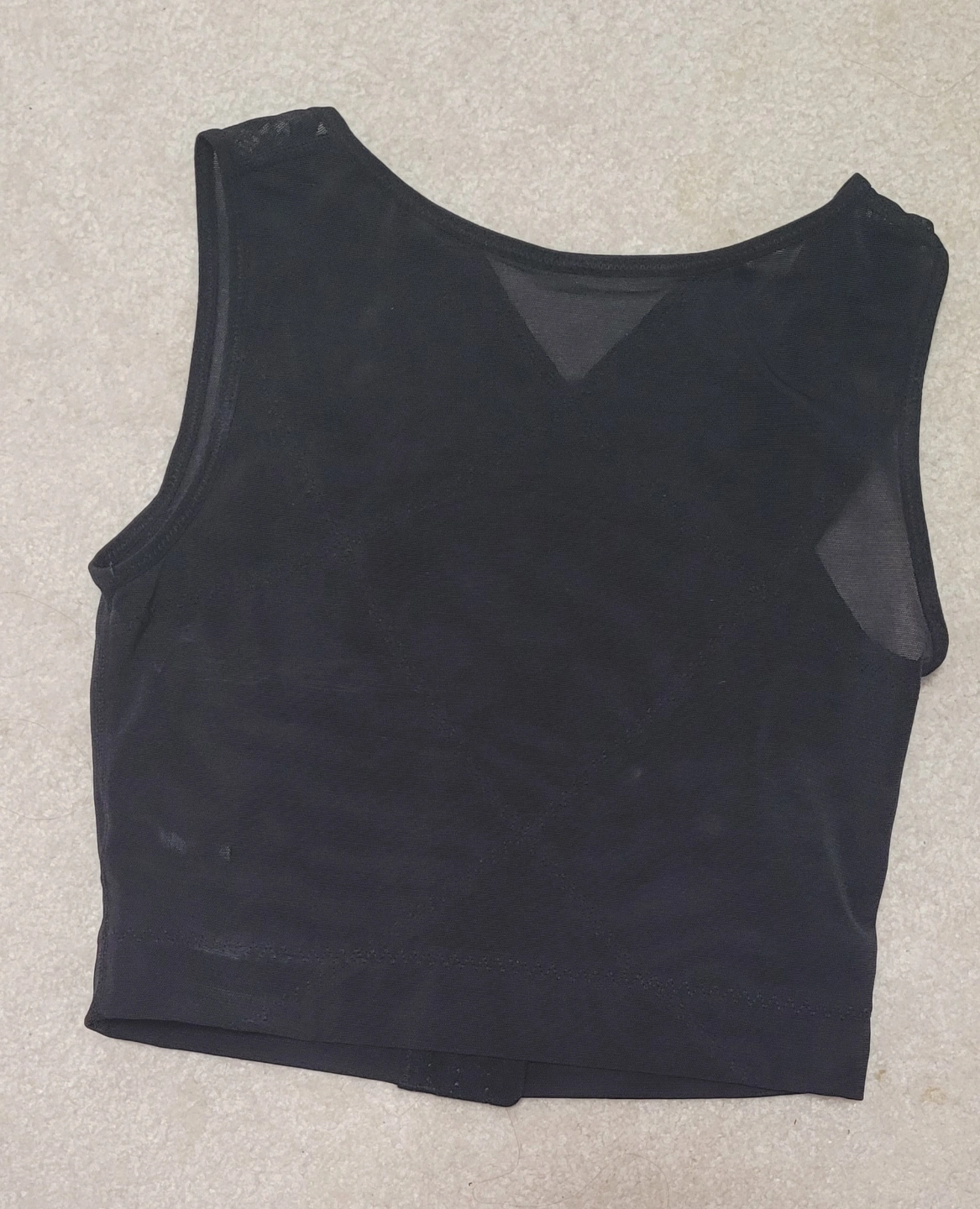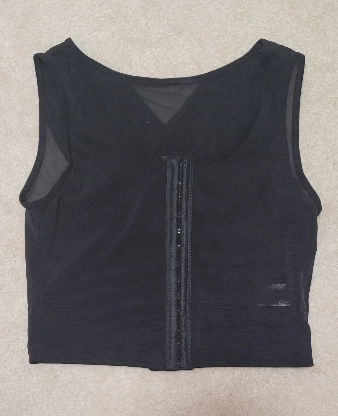 FREE Sleek black body shaper top. Features a mesh back and front, sleeveless design, and hook-and-eye closure. Great for smoothing and shaping.