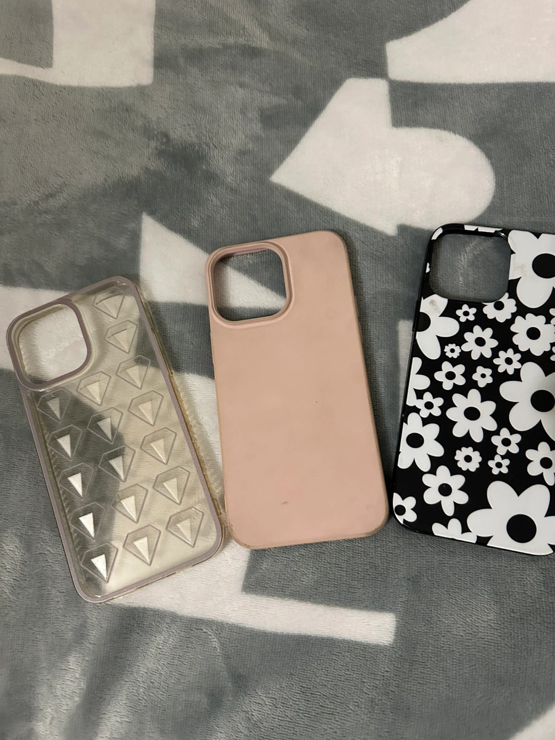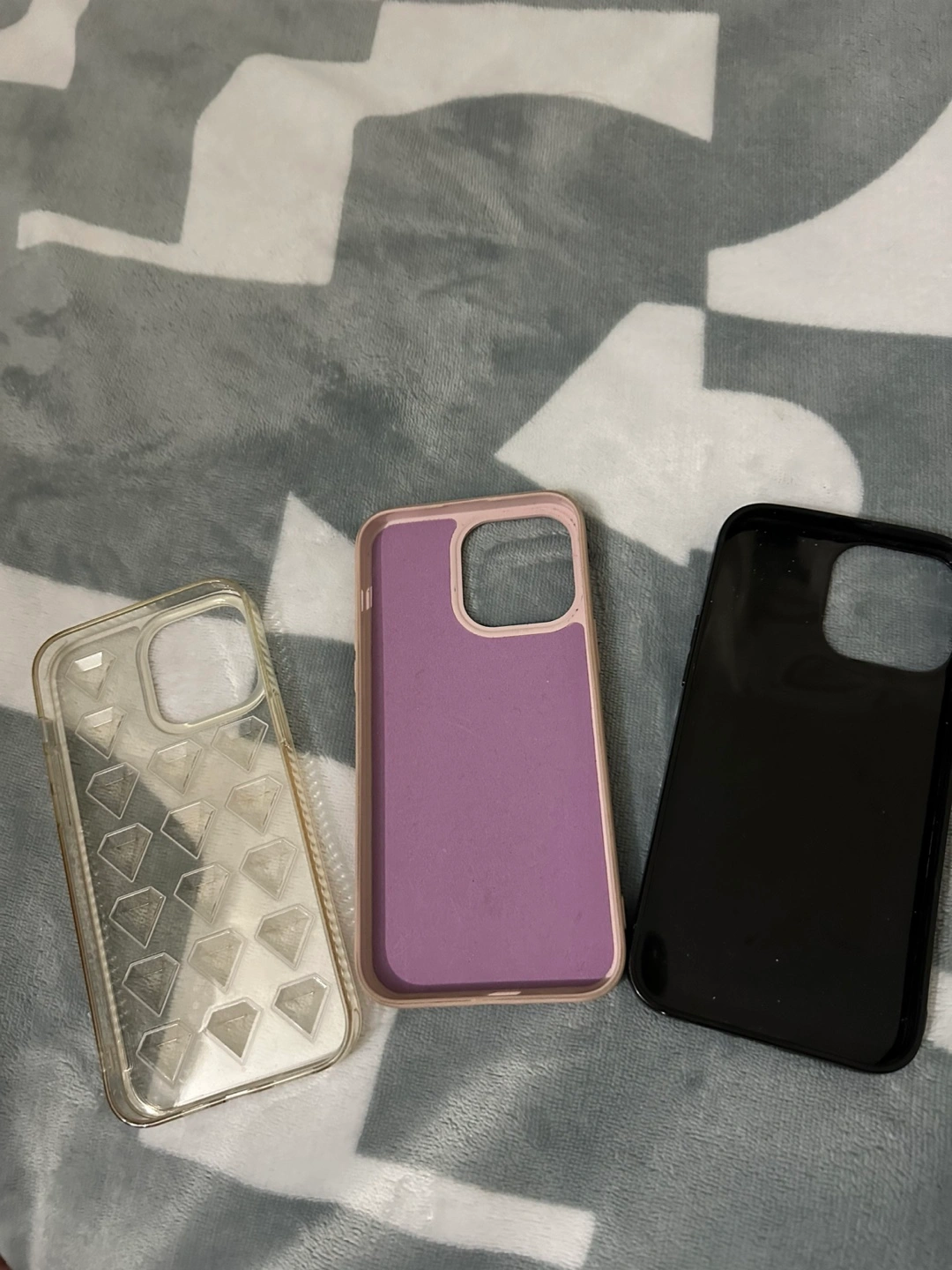 Giving away for free a set of three iPhone 13 cases! There's a clear case with a diamond pattern, a solid light purple/pink case, and a black and white floral case. They're all in great shape and ready for a new home