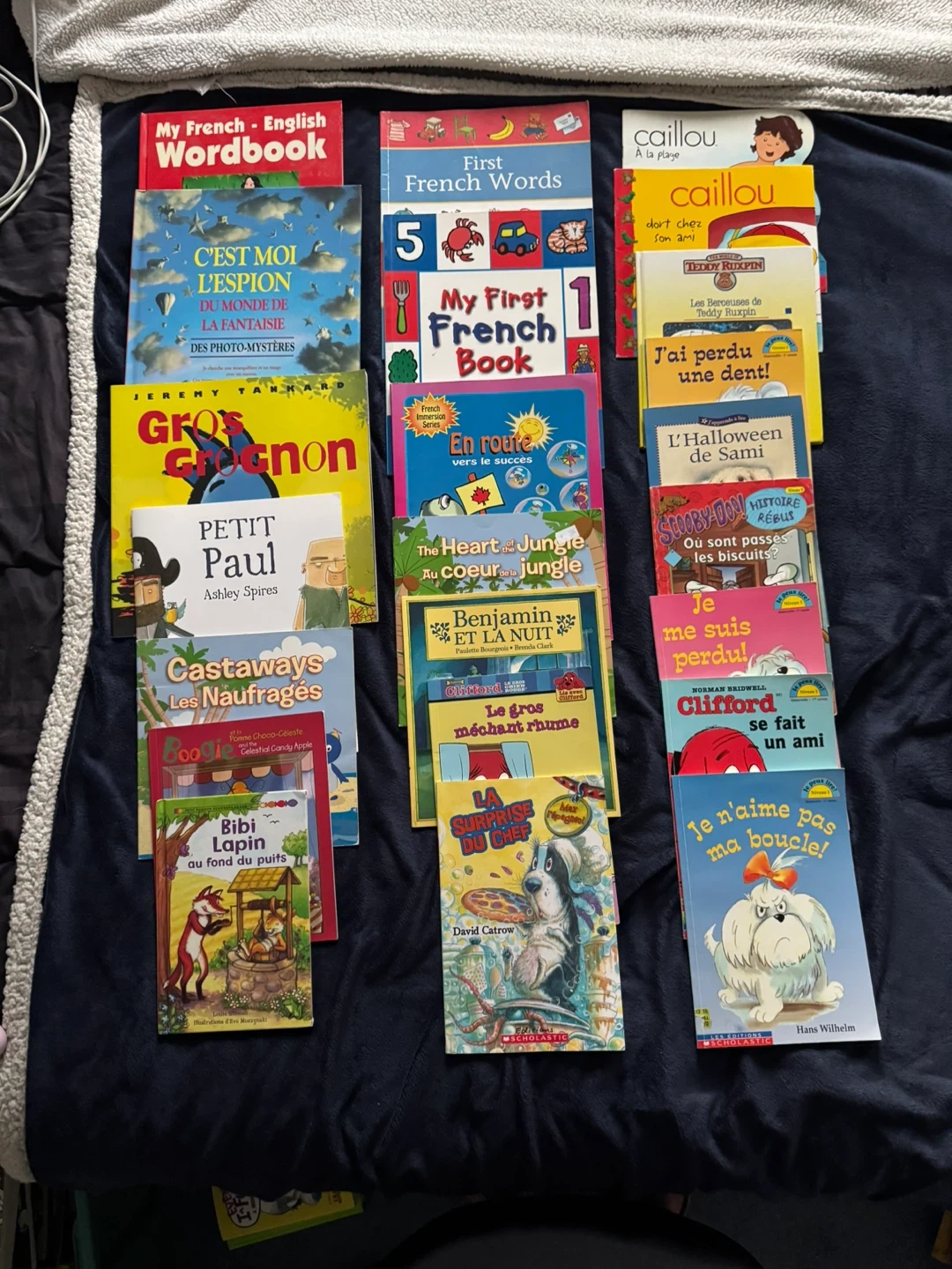 Selling a bundle of French children's books! Perfect for kids learning French or for French immersion students. Titles include classics like Caillou, Clifford, and Bibi Lapin. Great condition and ready for a new home! Perfect for beginner French readers. 23 books in all.