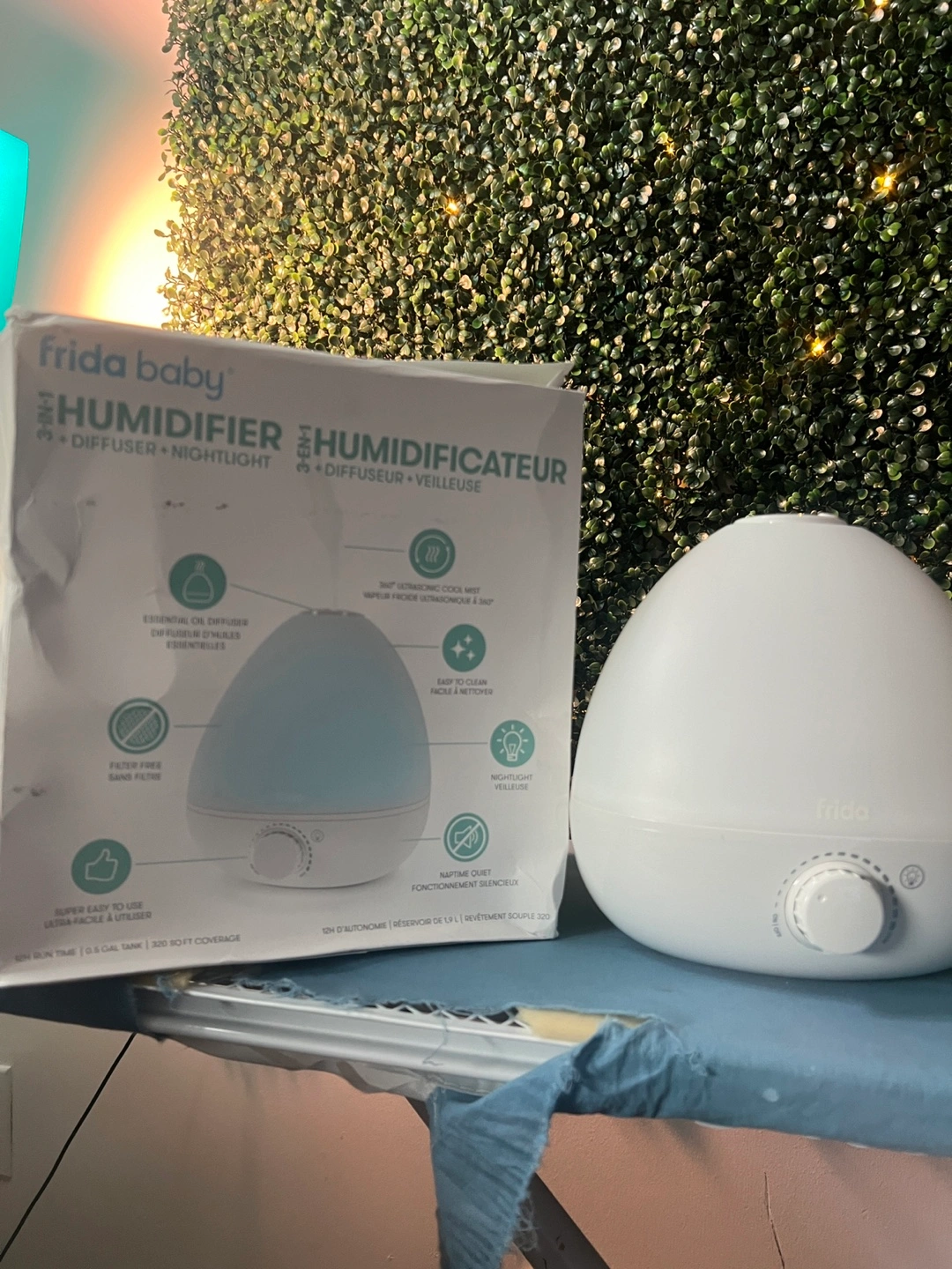Selling a Frida Baby 3-in-1 Humidifier that also works as a diffuser and nightlight! It features: - Essential oil diffuser - Filter-free - Easy to clean - Nightlight - Super easy to use
