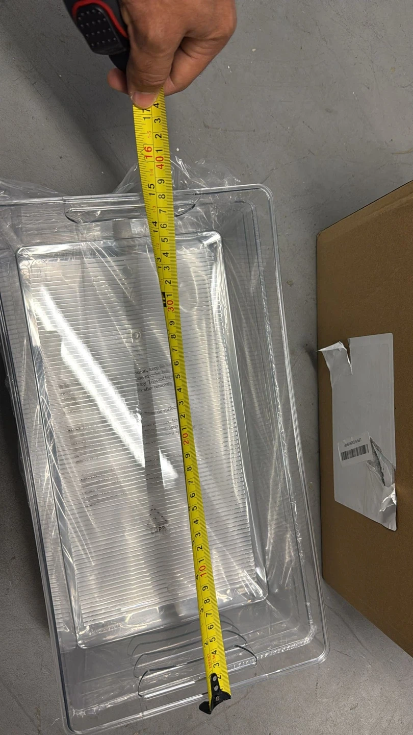 Selling a set of 4 clear plastic fridge trays. They appear to be in new condition and still in their original packaging. The approximate dimensions are 9 inches by 16 inches. Perfect for organizing your fridge!