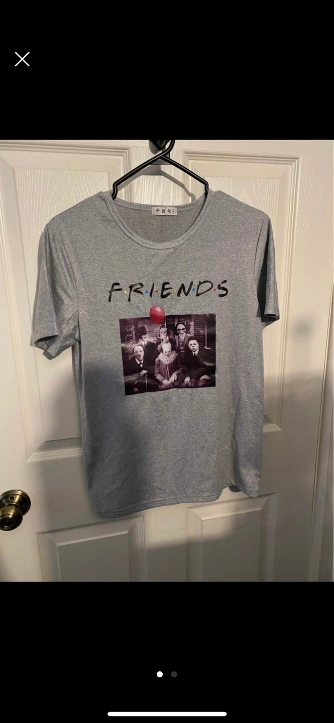 Grey t-shirt with a graphic of iconic horror characters Medium
