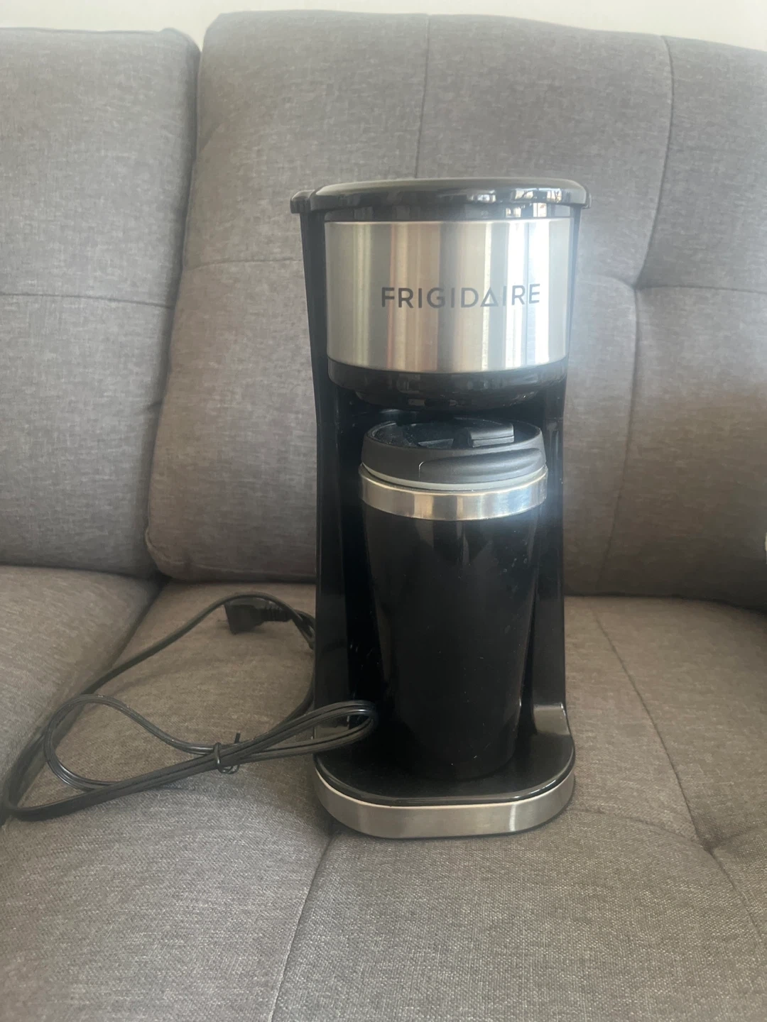 Selling a Frigidaire single serve coffee maker! It's in great condition and perfect for a quick cup of coffee in the morning. Comes with the reusable filter and travel mug