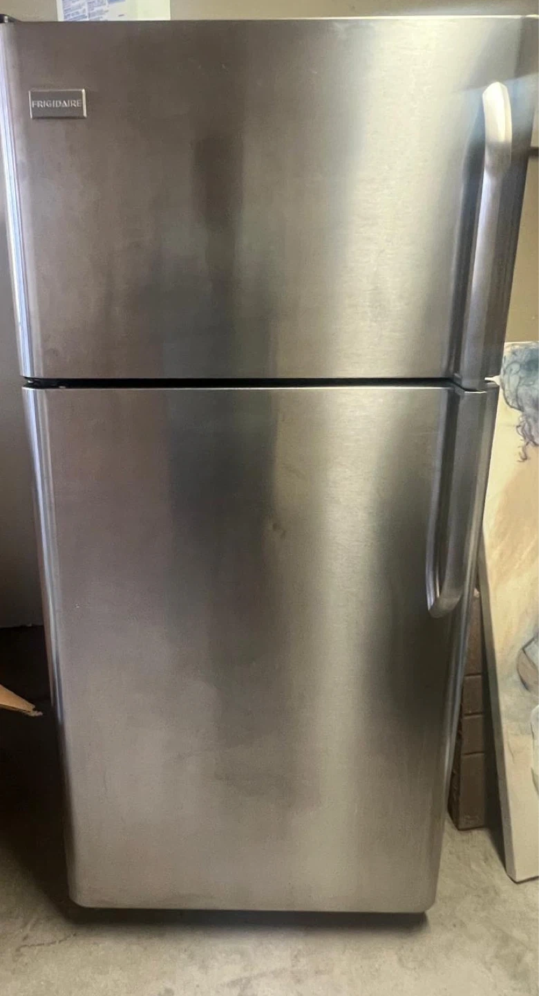 ONLY SERIOUS BUYERS CONTACT ME. I VALUE PUNCTUALITY. IF THE PRICE IS ABOVE YOUR BUDGET, I MAY CONSIDER REDUCING IT. IF YOU PLAN TO GHOST AFTER SCHEDULING A DEAL, DO NOT REACH OUT. Selling a Frigidaire top freezer refrigerator in stainless steel. It's in good working condition and ready to keep your groceries fresh! Perfect for a small apartment or as a second fridge in the garage. The interior is clean and well-maintained. WORKING SECONDARY FRIDGE, NO LONGER NEEDED. LOCATED IN MY GARAGE – BUYER MUST HANDLE PICKUP, LIFTING, AND TRANSPORT. NO HELP AVAILABLE.