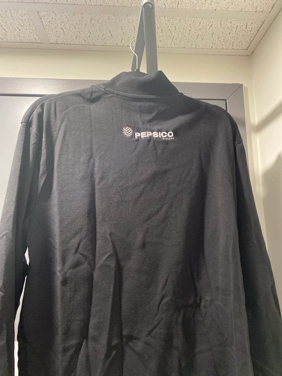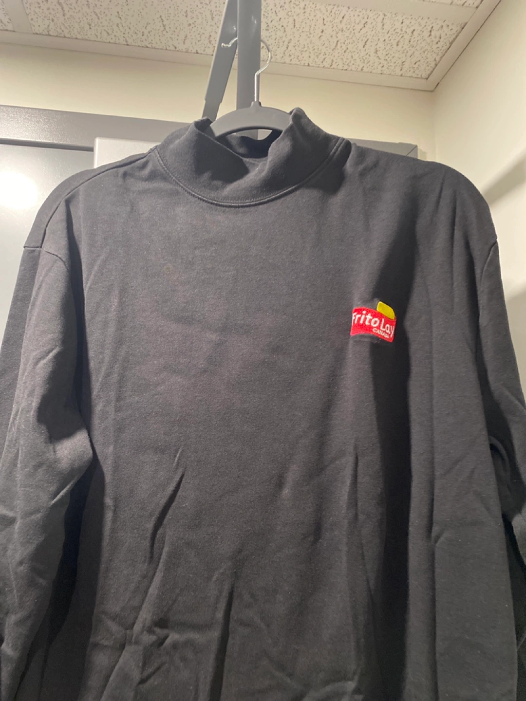 Black long sleeve mock neck shirt. Features small Frito-Lay logo on front and PepsiCo logo on back. Good condition. Just needs some ironing, and it’ll look brand new!