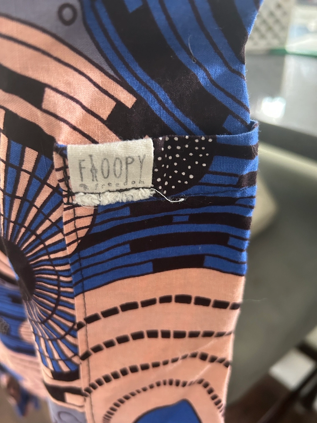 Selling a pair of Froopy Freedom pants with a unique blue pattern! These pants are very comfy and stylish for everyday wear. They feature an elastic waistband for a flexible fit. Open at waist to replace or change to drawstring. Perfect for adding a pop of colour to your wardrobe! One size.