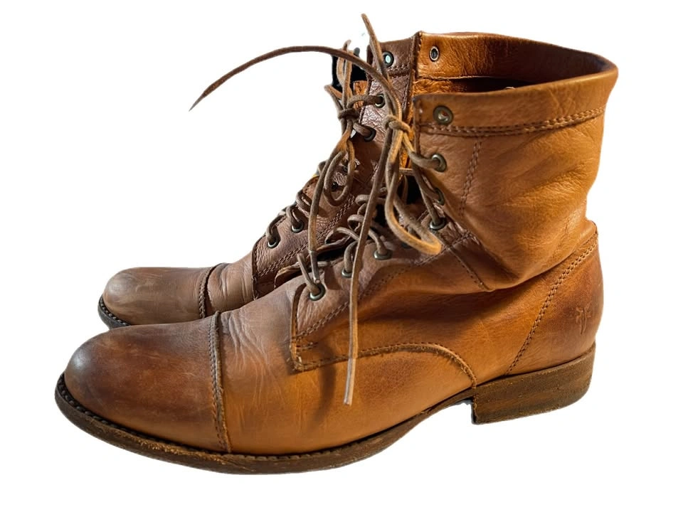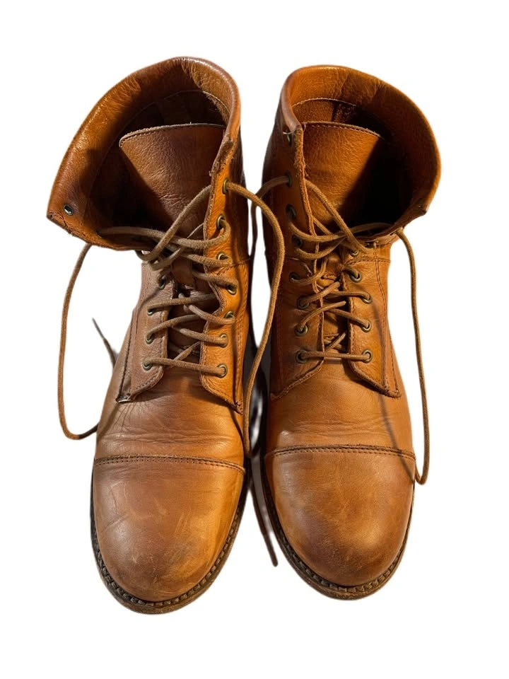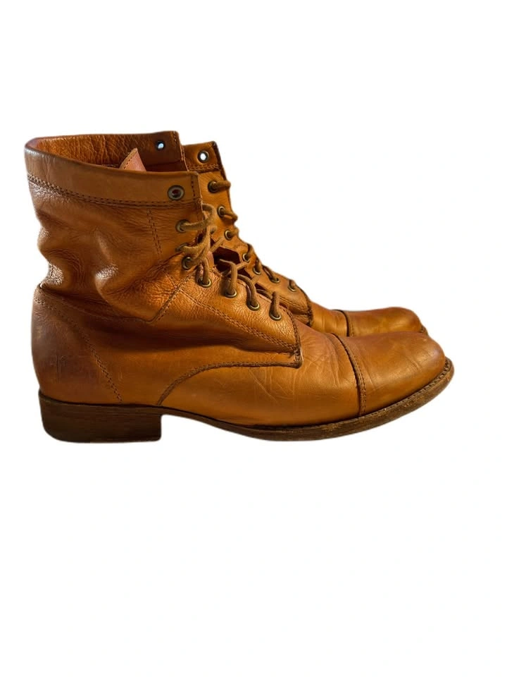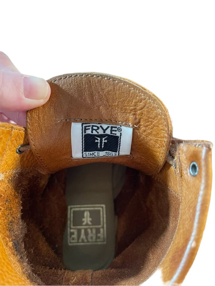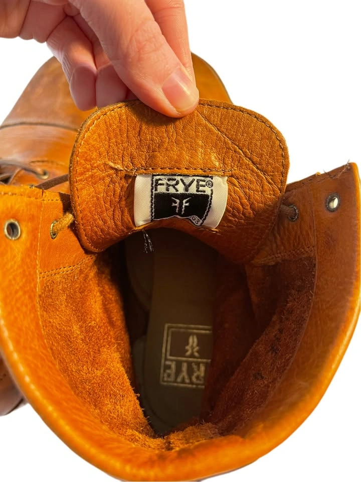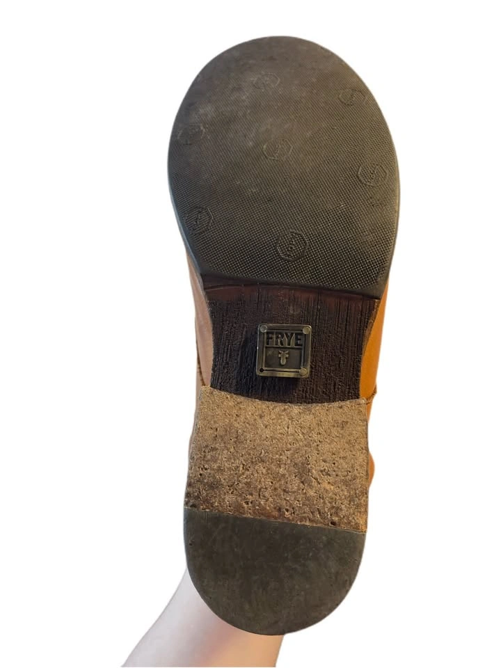 These gorgeous Frye boots have hardly been worn. Please review all photos before purchasing: Some minor scuffs are pictured that I haven't even tried to buff out with a leather conditioner. With a minor amount of TLC, these boots should look brand new. I didn't wear the original soles at all - I purchased the boots and then immediately had the traction added on in preparation for some icy days. I really thought I could pull these off, but they aren't my style, and they've been sitting untouched in my closet. Color: Cognac Size: 7 (though I cannot find the size mark on the boot itself, which is why I included the photo with the tape measure) Located in South Edmonton - Millwoods (Google Maps Menisa School) *cross-posted* I have other listings on marketplace/poshmark is jossgold