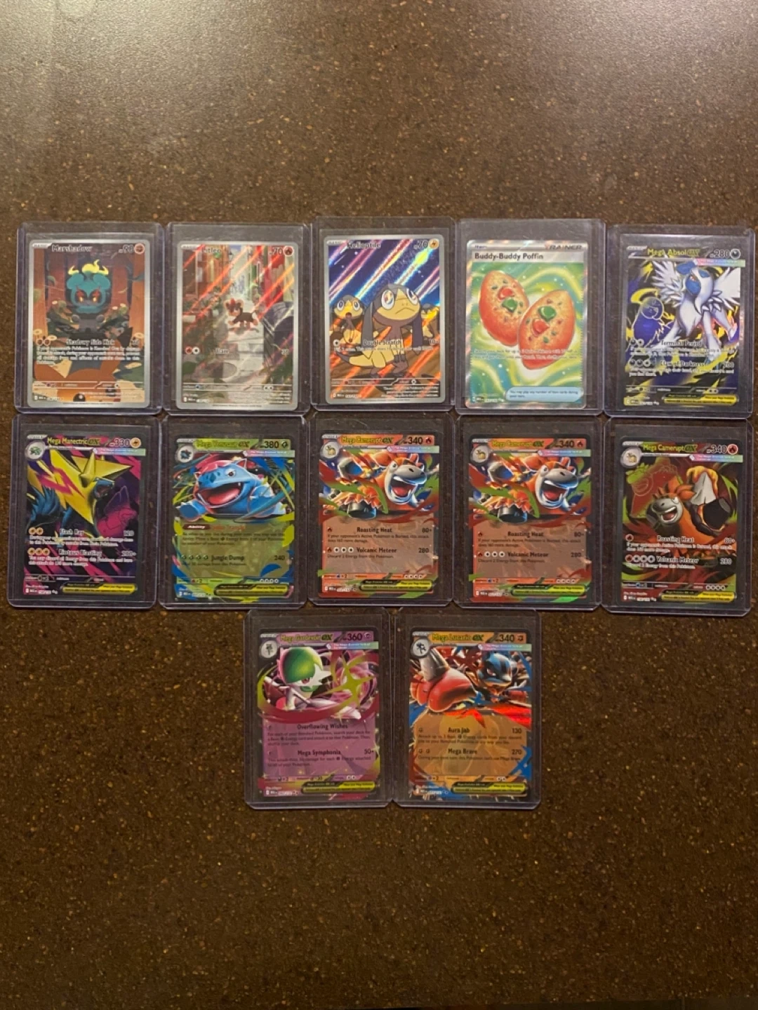 Marshadow:$70-$100 (pending) Litleo:$7 (Pending) Helioptile:$7 (Pending) Buddy-Buddy Poffin:$10 Meg Abdol Ex:$10 Mega Manectric EX:$8 (Pending) Mega Venusaur EX:$3 Mega Camerupt Ultra Rare EX:$5 (Pending) Mega Lucario EX:$3