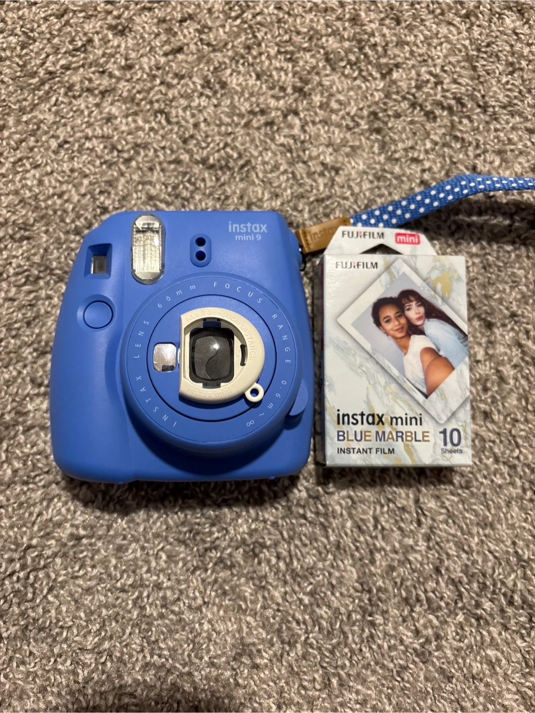 Selling a Fujifilm Instax Mini 9 camera in blue! It comes with a pack of Instax Mini Blue Marble film (10 sheets) so you can start snapping photos right away