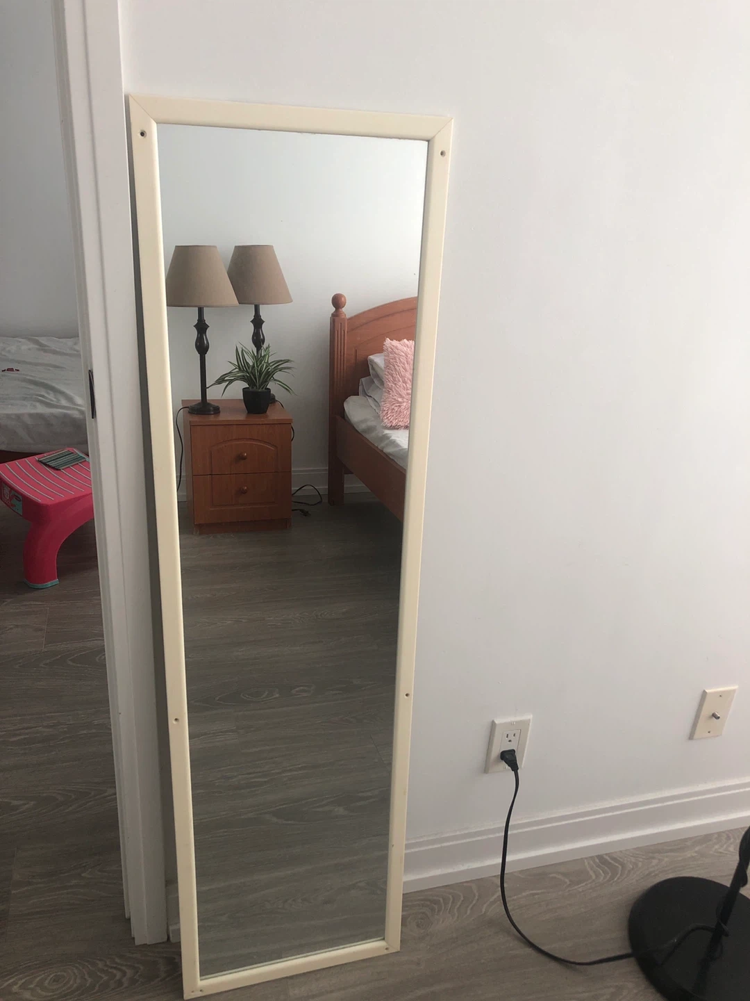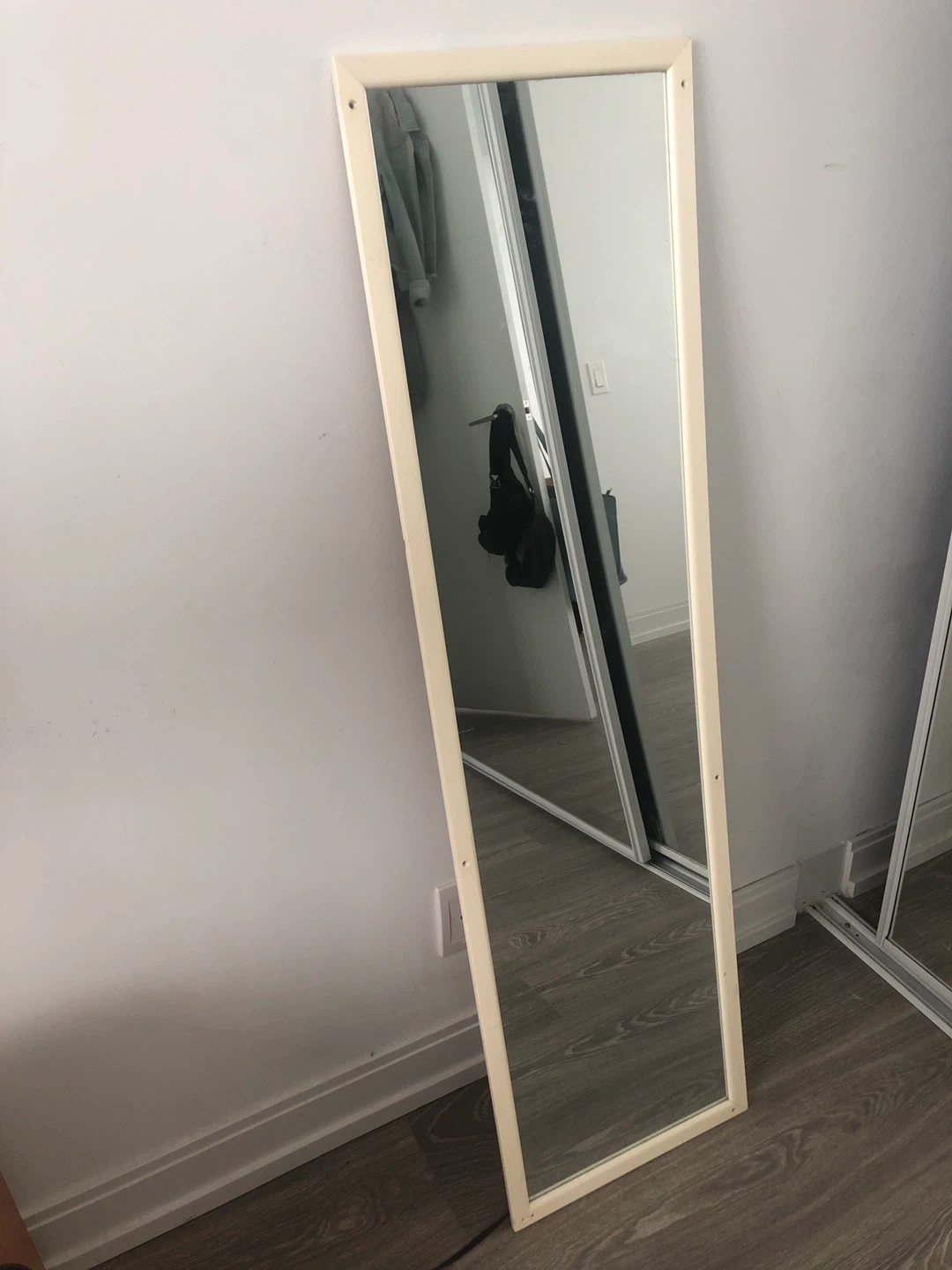 Selling a full-length mirror with an off-white frame! It's in great condition and ready to brighten up your space. Perfect for checking out your outfit or adding a touch of elegance to any room 125x35 cm