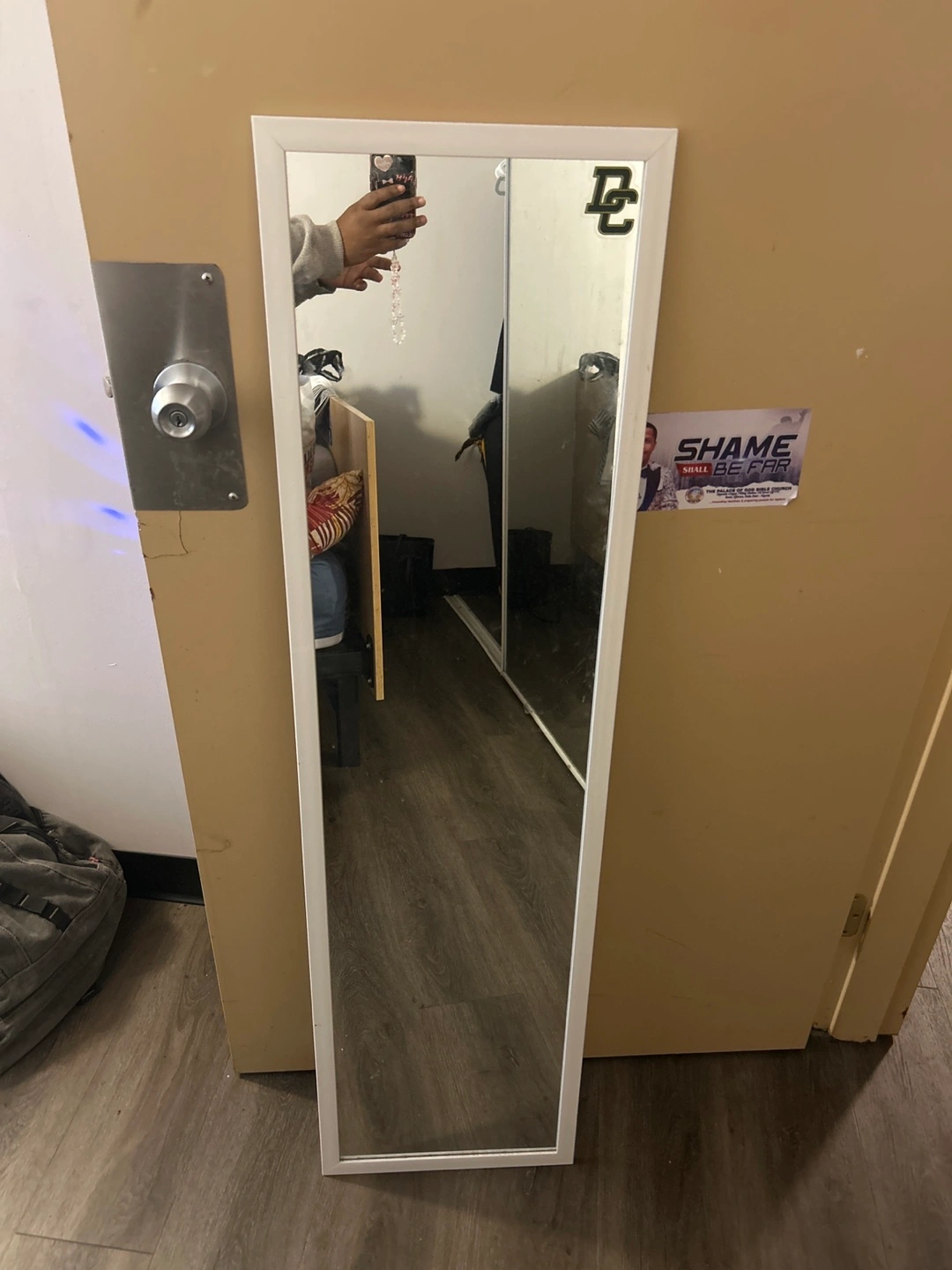 Selling a full-length mirror! It's in great shape and ready to brighten up your space. Perfect for checking out your outfit or adding a touch of elegance to any room