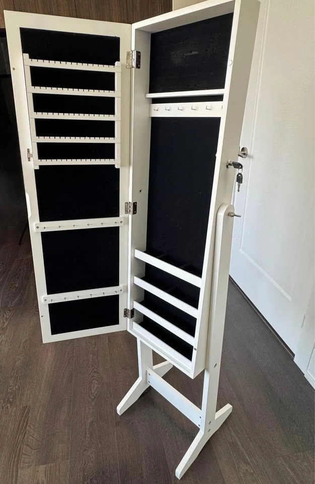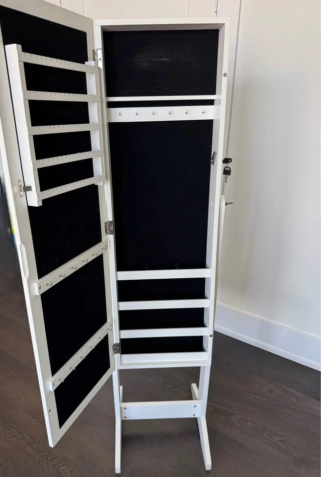 Full-length mirror with interior storage, perfect for jewelry or accessories. ✅ Sleek design ✅ Excellent Condition ✅ Smoke-free, pet-free home Asking: $60 Pickup near Lower Sherbourne & Queens Quay E.