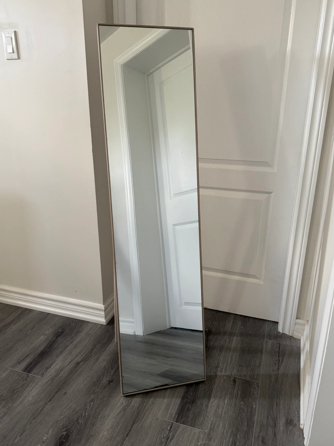 Brand new bought it a while ago. Haven’t used much was in my garage. It's in great condition and ready to brighten up your space! Perfect for checking out your outfit or adding a touch of elegance to any room. The only reason I wanna sell it because I got a wall mirror . Excellent Design!!!! Grab a deal today Only pick up ☺️