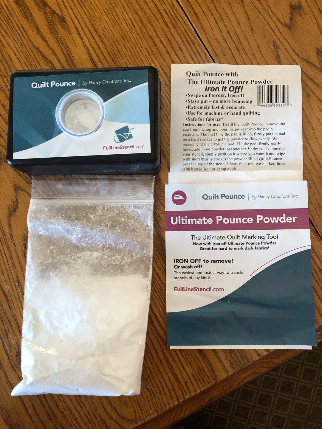 Get your quilting projects off to a great start with this Full Line Stencil set! Only used once and in excellent condition! In original packaging. Retail price to buy both separately is $60. Set includes the Pounce Pad and Swirls & Curls stencil, designed for easy chalk application with your Quilt Pounce Pad. Also included is the Quilt Pounce powder for marking your fabric. The stencil is reusable, and the powder is easy to iron off or wash off!
