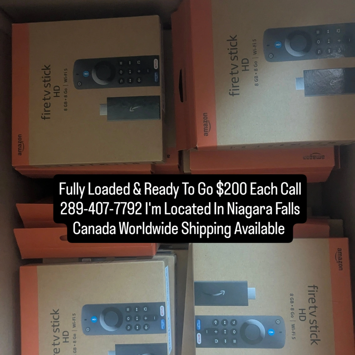 Are you sick of paying $200+ a month for Cable? Save $1,200 - $2,400 a year buy a fire stick today. Have the freedom to watch anything you want when you want for free all you need is Internet. Programming includes everything listed below. 1,000+ Live TV Channels PPV Sports Free Live TV Free movies still playing in theaters TV shows Kodi 20+ Free UFC fight pass included Kids Network And much more ... Everything I install is free with no monthly fees. I sell Fully Loaded Fire Sticks for $200 each. I also offer worldwide shipping. I'm located in Chippawa / Niagara Falls Business hours are everyday from 10am - 5pm 289-407-7792