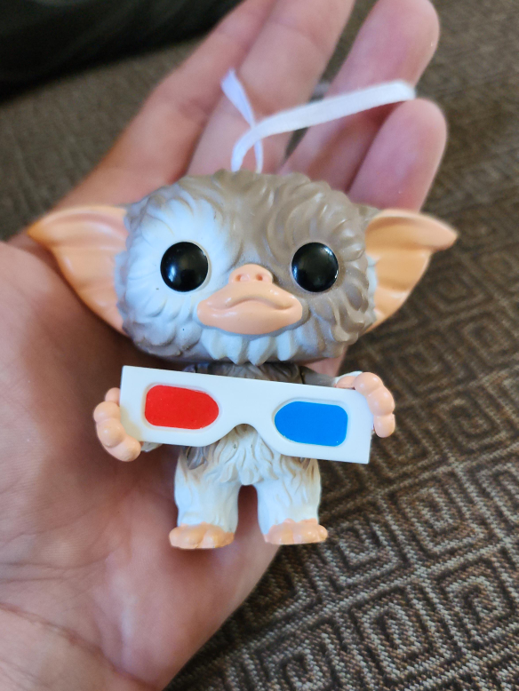 Here's a cute Gremlins Gizmo ornament! It's holding 3D glasses and ready to hang on your tree or wherever you'd like