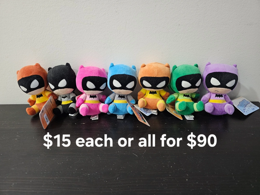 meetup at warden and bamburgh circle mcdonalds Collection of Funko Mopeez Batman plushies. Various colours. New with tags. $10 each or $60 for the set.