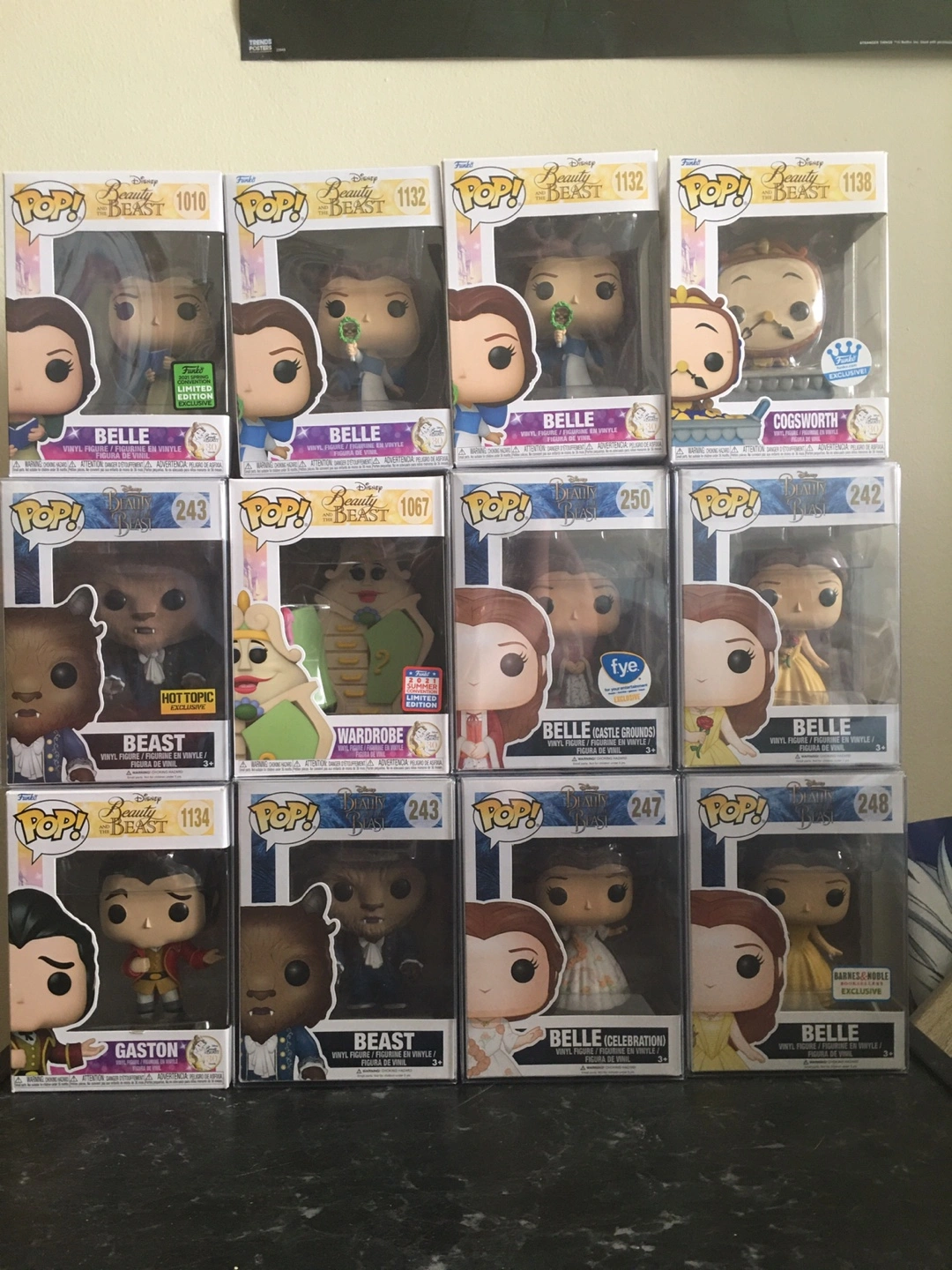 Selling a collection of Funko Pop! figures from Disney's Beauty and the Beast. Includes Belle, Beast, Gaston, Cogsworth, and Wardrobe. Perfect for any Disney collector!