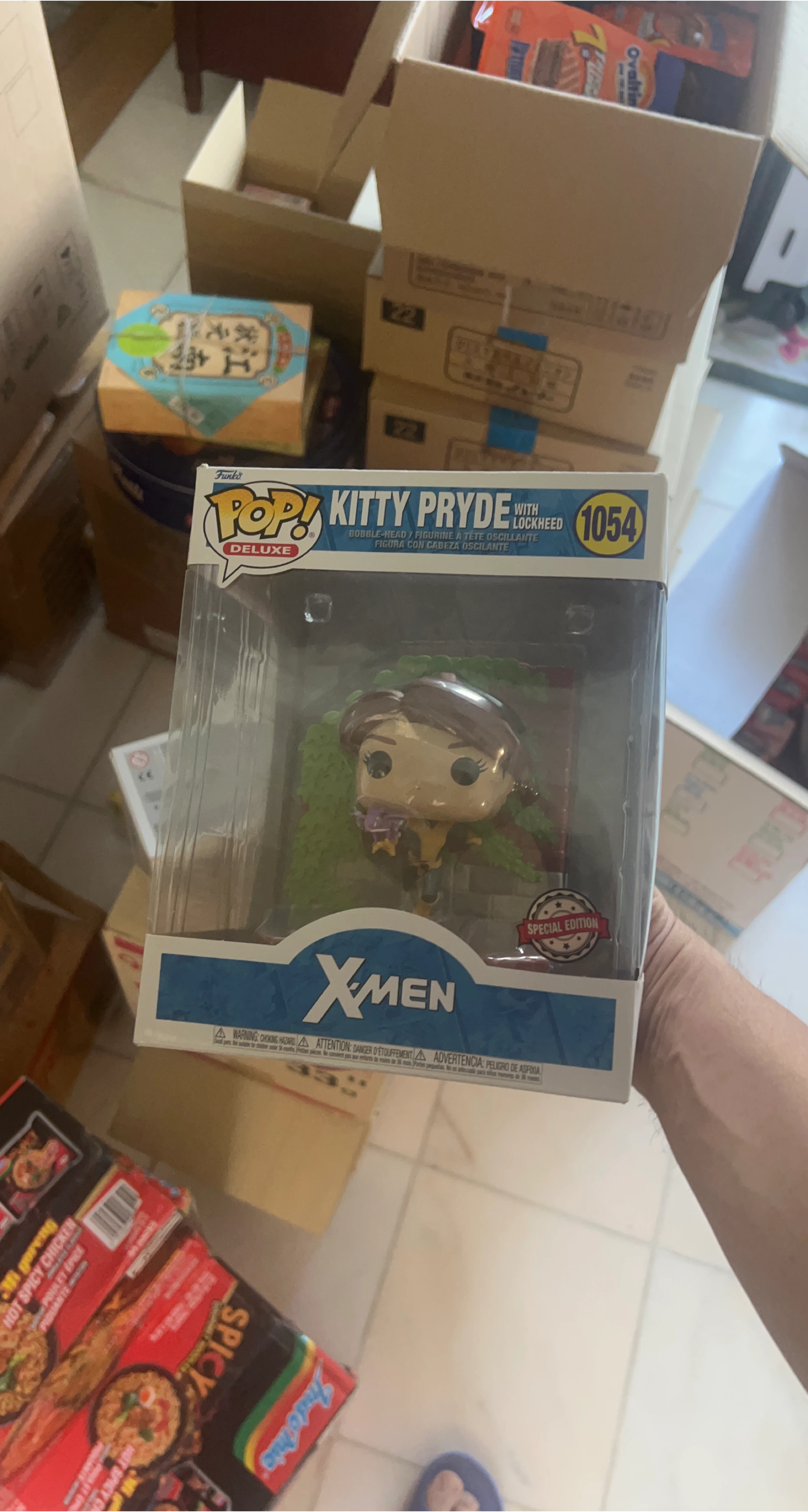 Selling a Funko Pop! Deluxe figure of Kitty Pryde with Lockheed, numbered 1054. It's a special edition from the X-Men series. Great for collectors!