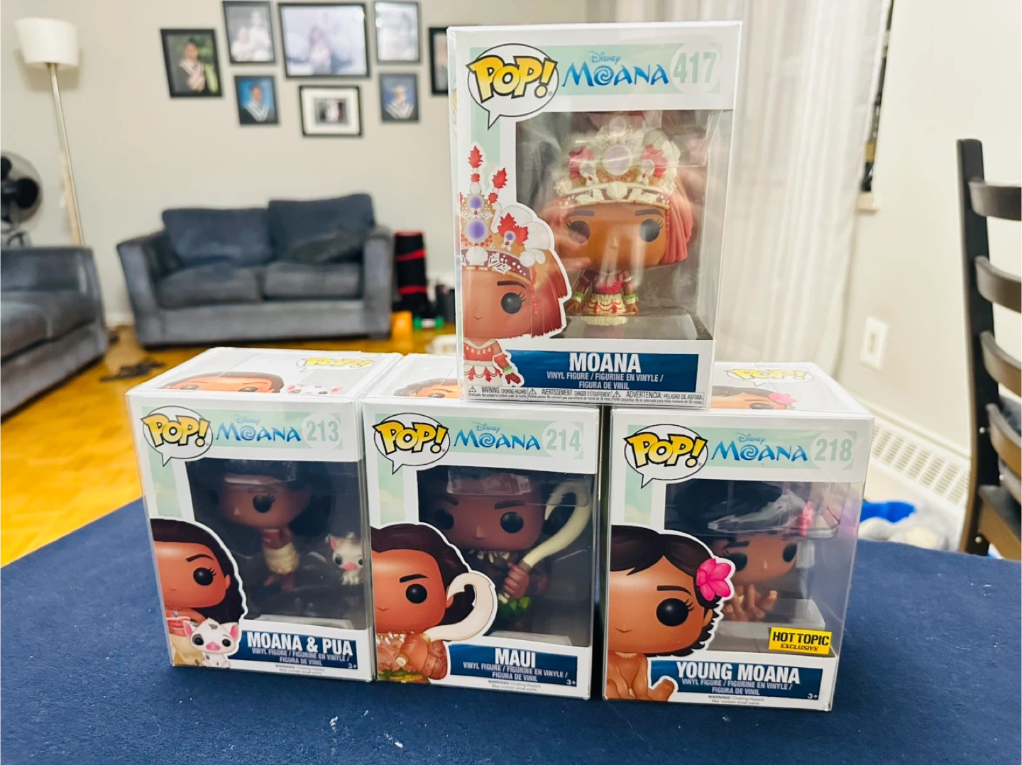 Selling a collection of Funko Pop! Disney figures! All figures are in their original boxes and in great condition. Perfect for any Disney or Funko collector: - Lilo #124 - Stitch 626 #125 - Moana #417 - Moana & Pua #213 - Maui #214 - Young Moana #218 These would make a great addition to your collection or a fun gift!