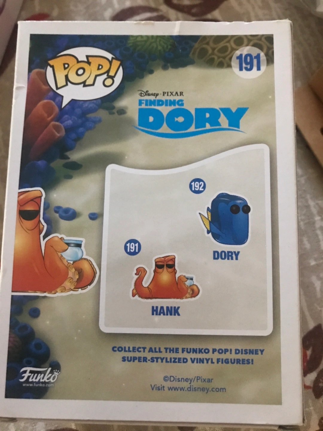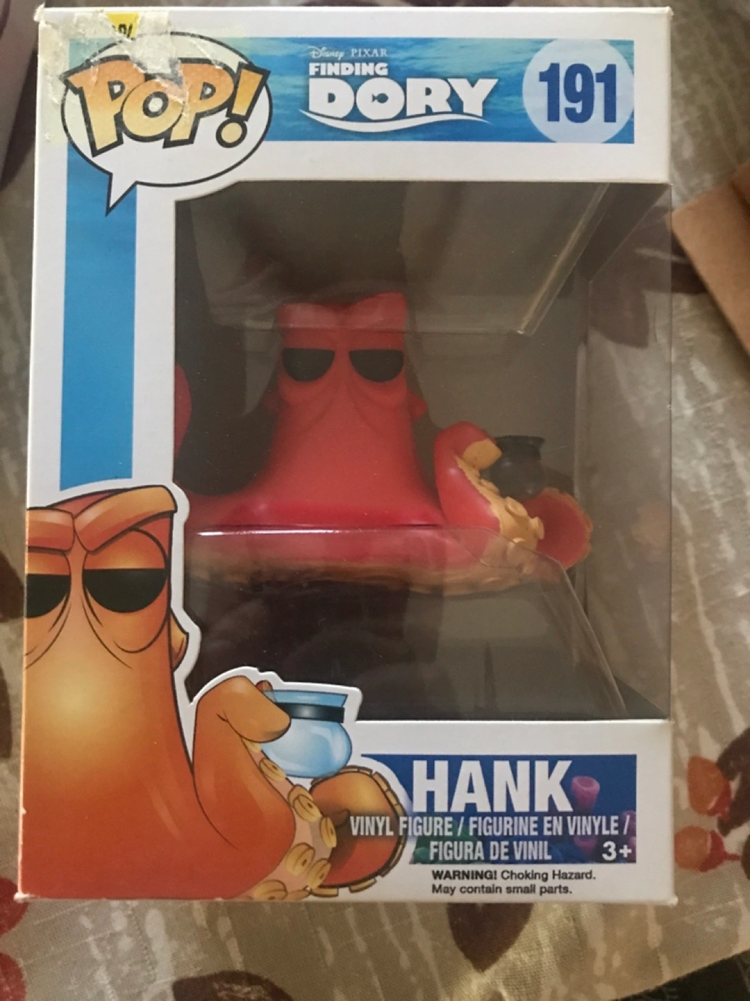 Selling a Funko Pop! figure of Hank from Disney Pixar's Finding Dory. This is figure #191 in the series. The vinyl figure is in its original box and is suitable for ages 3+