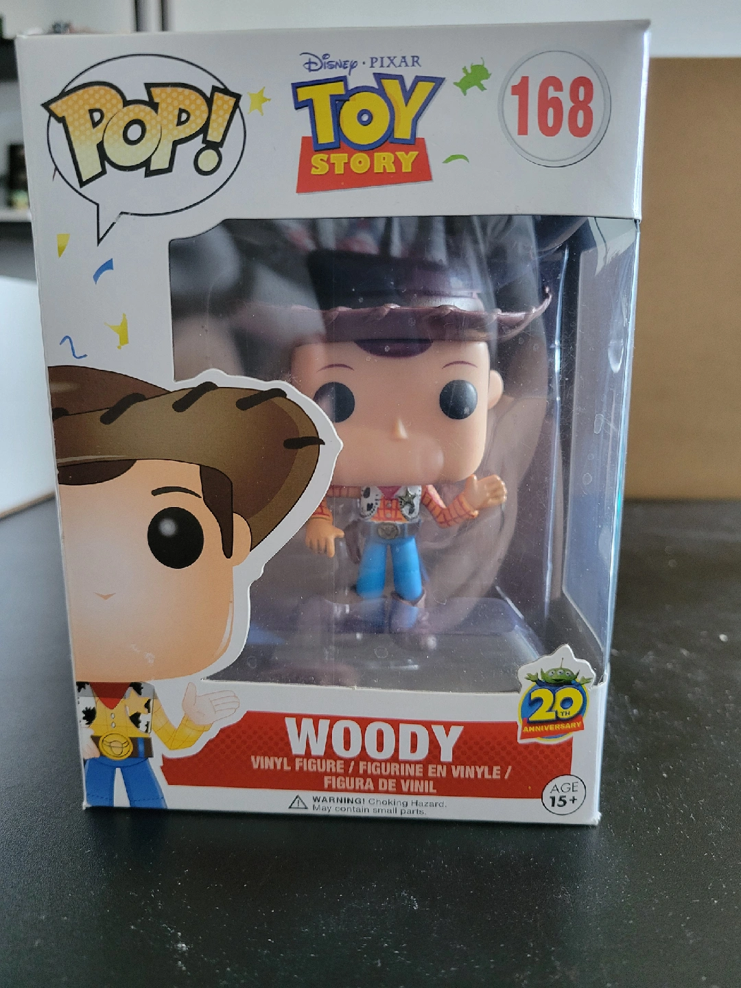 Selling a Funko Pop! figure of Woody from Disney Pixar's Toy Story figure #168. Comes in the original box. Non-smoking household. Non drop-offs.