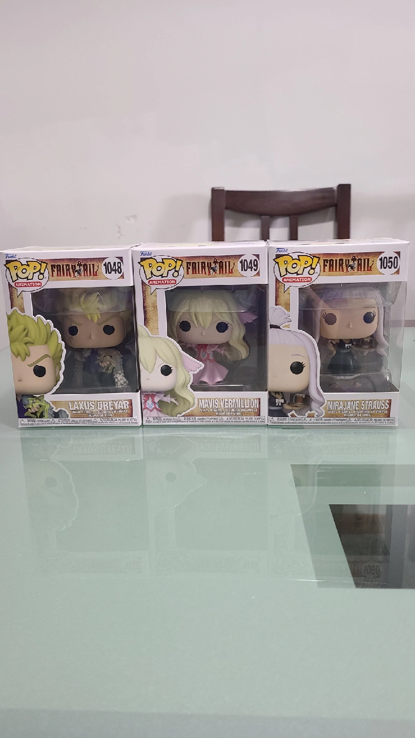 Selling three Funko Pop figures from the Fairy Tail Animation series! Included are: - Laxus Dreyar (1048) - Mavis Vermillion (1049) - Mirajane Strauss (1050) All figures are in their original boxes and in great condition