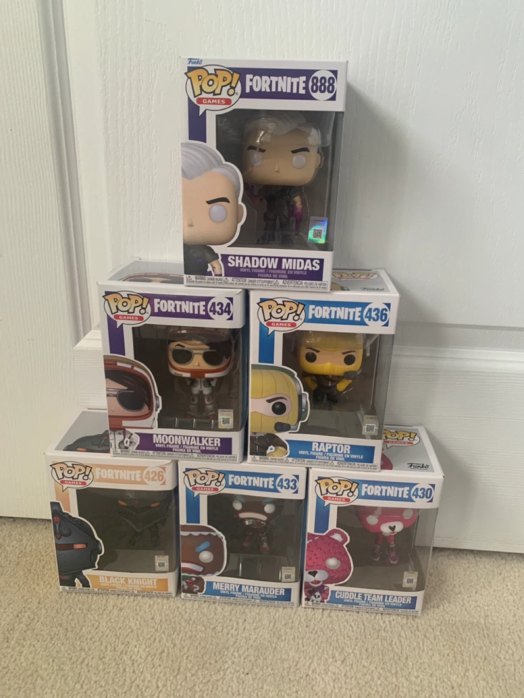 Selling a variety of Funko Pop! figures. They are all in their original boxes and in mid condition 18 total, willing to negotiate Available figures include: - Fortnite: Shadow Midas, Moonwalker, Raptor, Black Knight, Merry Marauder, Cuddle Team Leader - Marvel Avengers: Thanos, Iron Spider - Hockey: Auston Matthews, Wayne Gretzky, John Tavares, Jamie Benn, Frederik Andersen, Mitchell Marner - Captain Marvel: Goose the Cat - Bendy and the Ink Machine: Sammy Lawrence - IT: Pennywise Perfect for collectors!