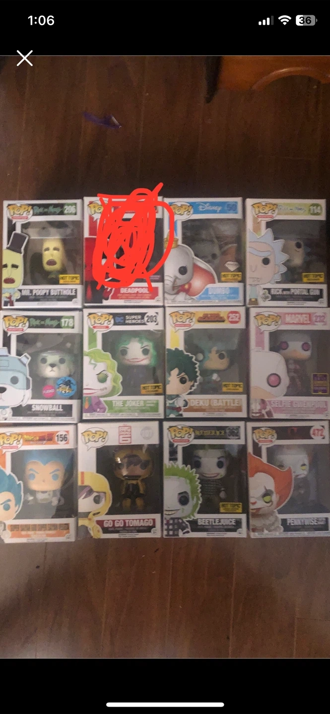 Selling a collection of Funko Pop! figures, including characters like Deadpool, Rick, the Joker, and others! These figures are all in their original boxes. They would make a great addition to any collection!