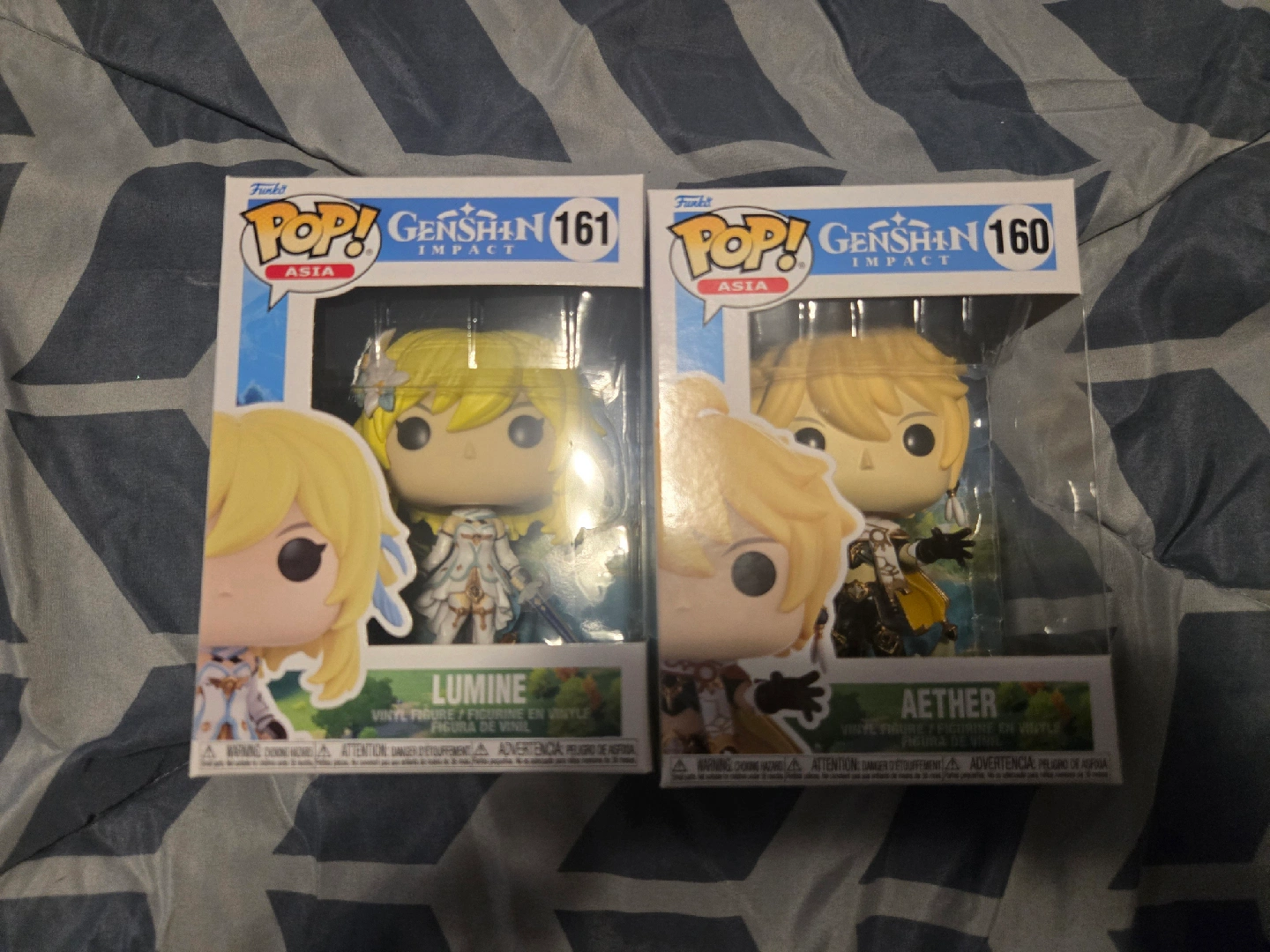 Selling Funko Pop! figures from Genshin Impact. One is Aether (160) and the other is Lumine (161). Both are in excellent condition and come in their original boxes Lumine $20 Aether $20