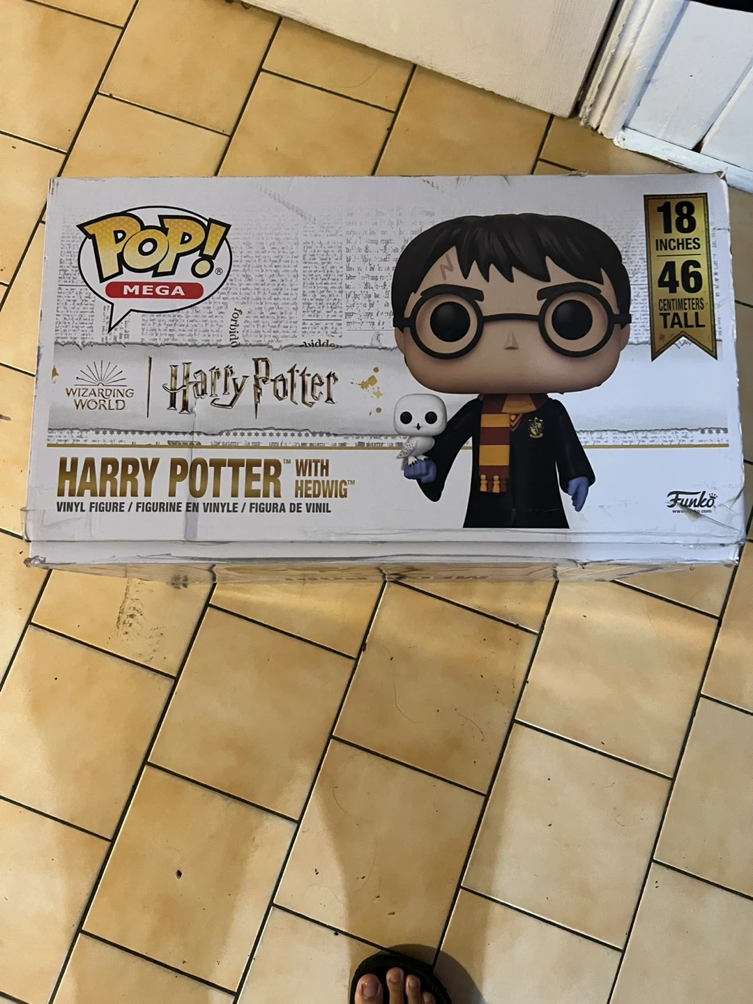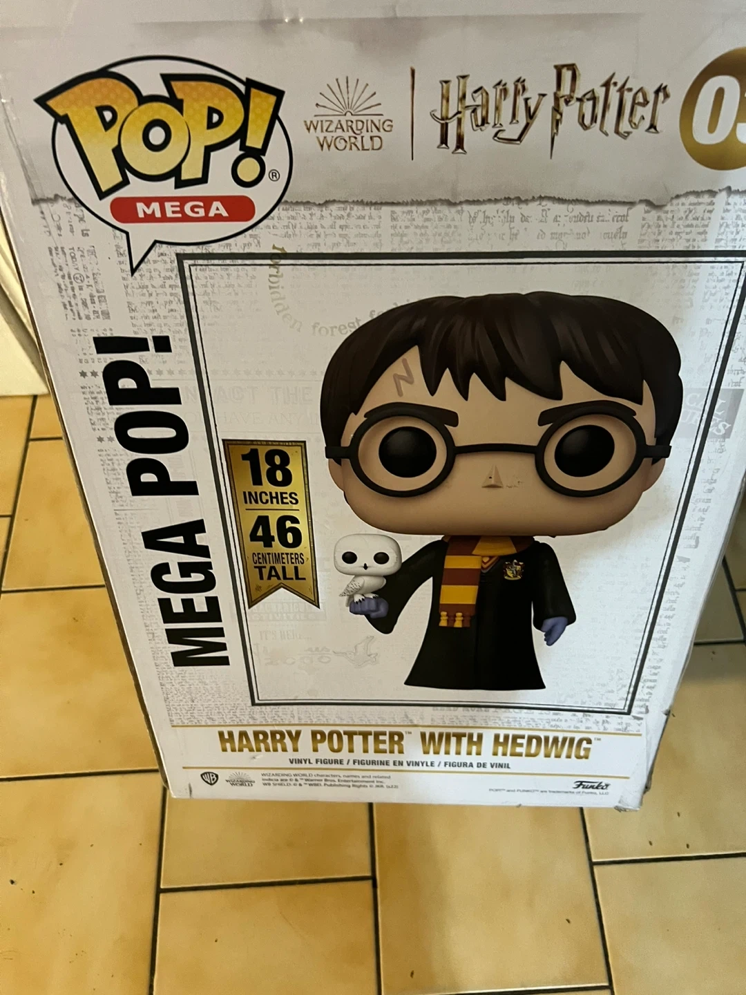 Selling a Funko Pop! Mega Harry Potter with Hedwig. It's a vinyl figure, and it's quite large, standing at 18 inches (46 cm) tall! Perfect for any Harry Potter fan or Funko collector