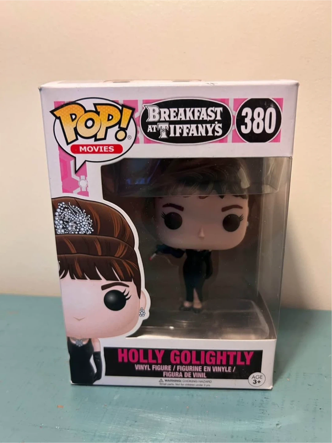 Selling a Funko Pop! figure of Holly Golightly from Breakfast at Tiffany's. It's from the Movies series and is number 380. The figure is a vinyl collectible and is suitable for ages 3+