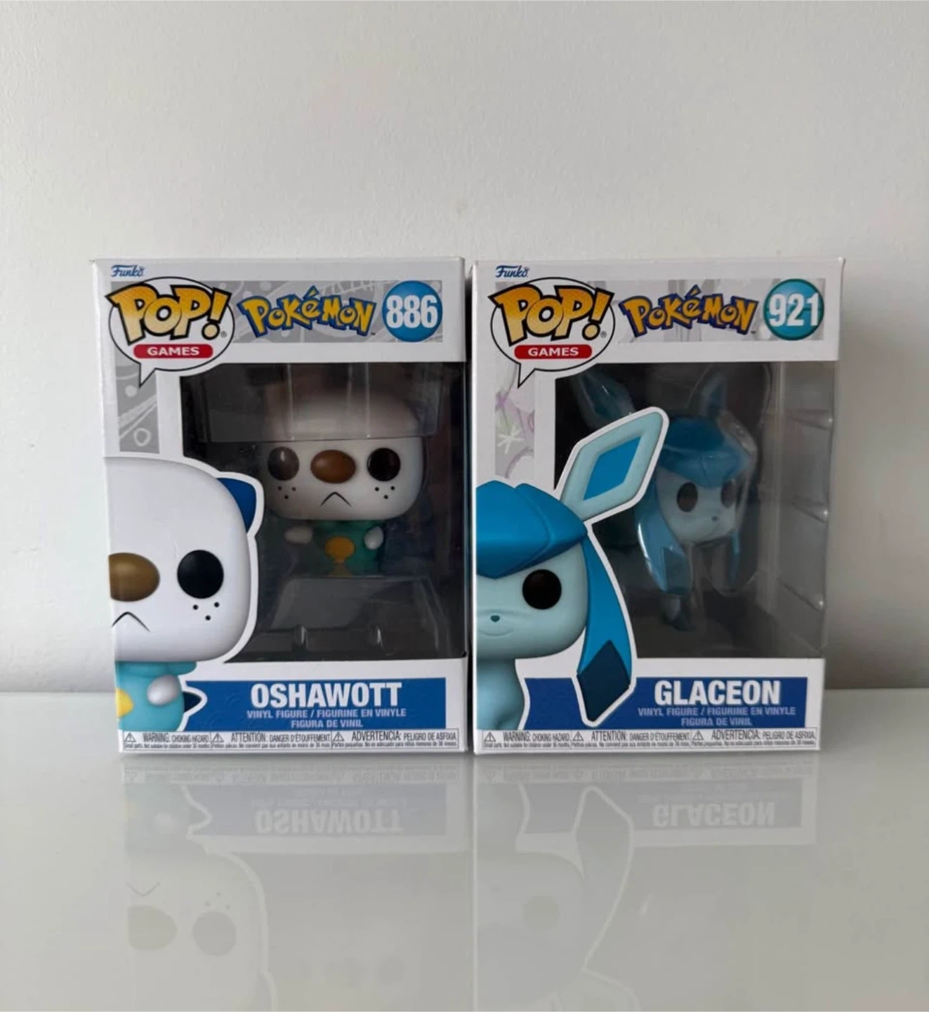 Selling two Funko Pop! vinyl figures from the Pokemon series: - Oshawott #886 - Glaceon #921 Both figures are in their original boxes and ready to join your collection!