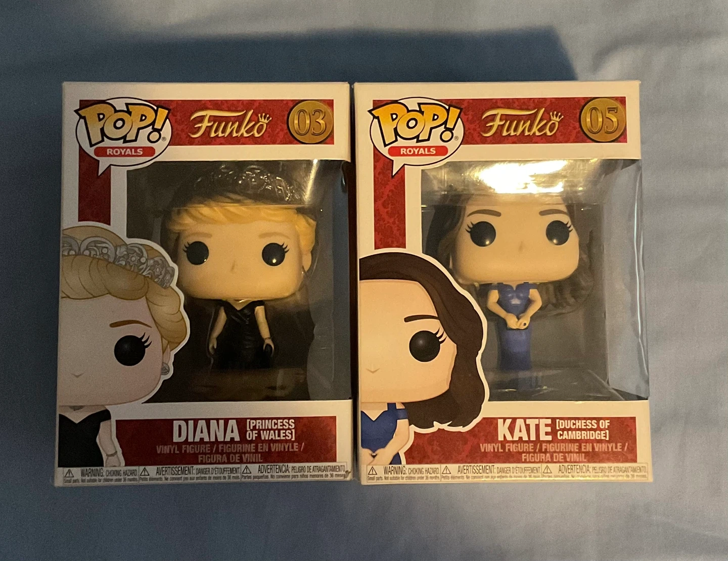 Selling two Funko Pops of Diana (Princess of Wales) and Kate (Duchess of Cambridge). They're in their original boxes, with a tiny bit of damage shown on photos 5-8. Looking to sell together for $30 ($15 each). Thanks.