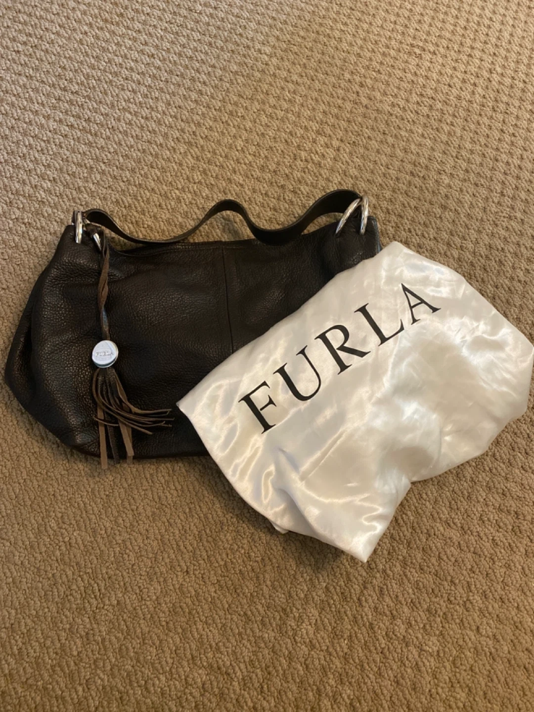 This is a lovely Furla hobo bag in brown leather. It's in great condition and comes with the original dust bag. Perfect for everyday use! Pickup from Richmond.