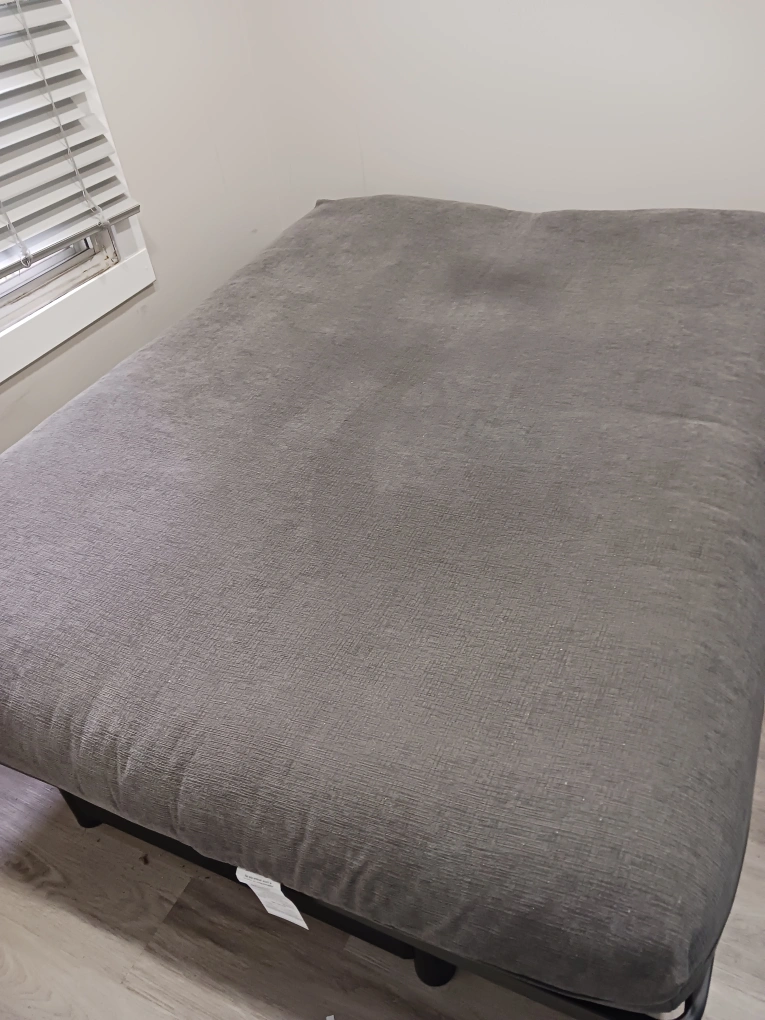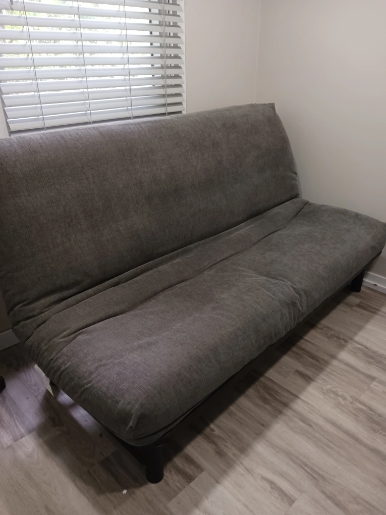 Selling a futon in great condition! Opens to a double bed. Perfect for small spaces. Medium firm, memory foam mattress on a strong metal frame. Purchased at The Futon Shop . Replaceable charcoal grey cover. Barely used.