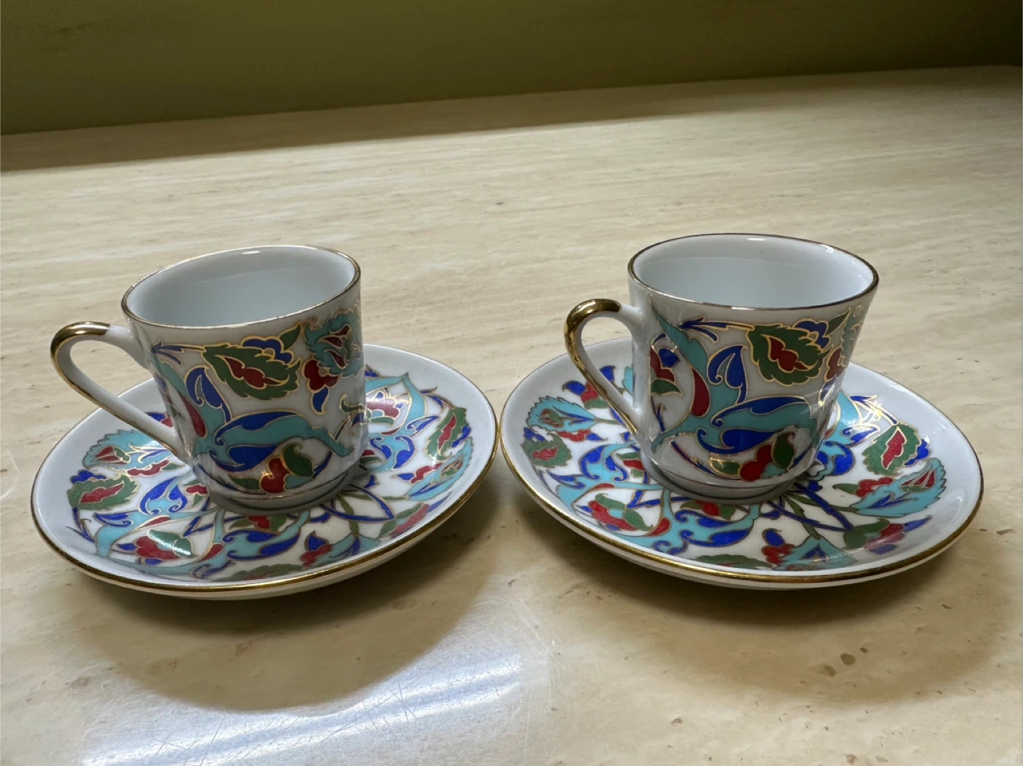 Selling a set of two beautiful Turkish coffee cups and saucers from Güral Porselen! They feature a lovely floral design with gold trim. Perfect for enjoying a traditional Turkish coffee or an Expresso at home New condition, never be used