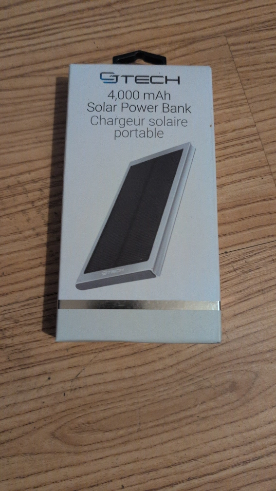 Selling a G-Tech 4,000 mAh solar power bank. It's a portable charger, perfect for on the go! (×3)