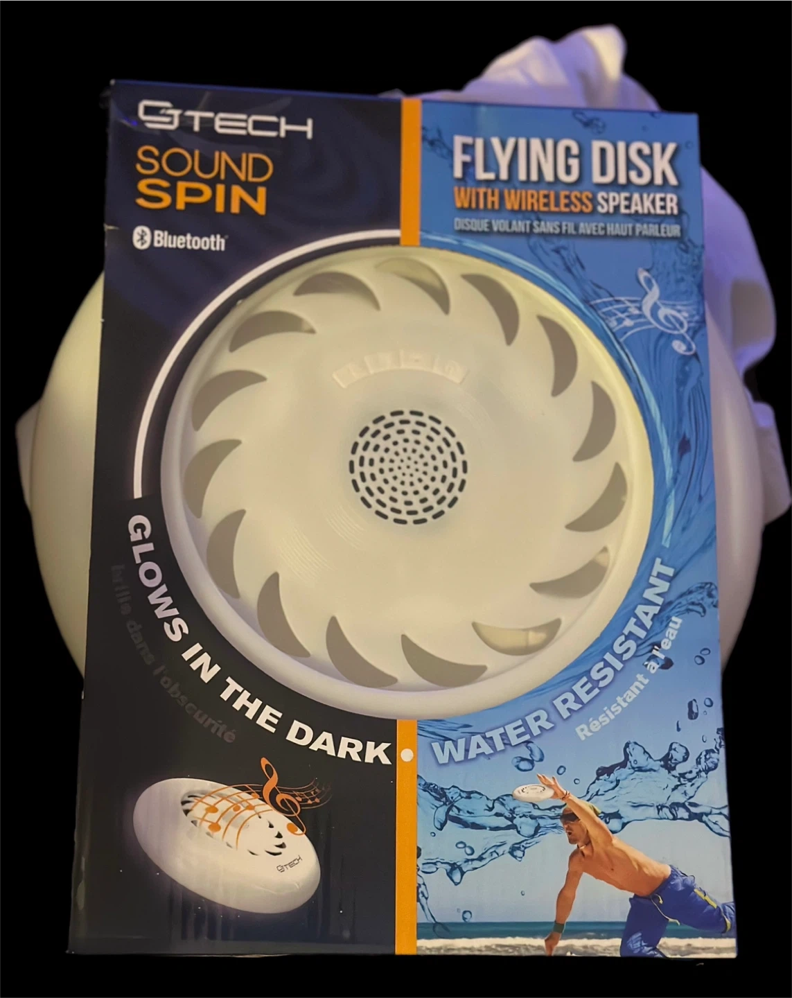 Brand new Selling a G-Tech Sound Spin Flying Disk with Wireless Speaker! It glows in the dark and is water resistant. Perfect for some outdoor fun!