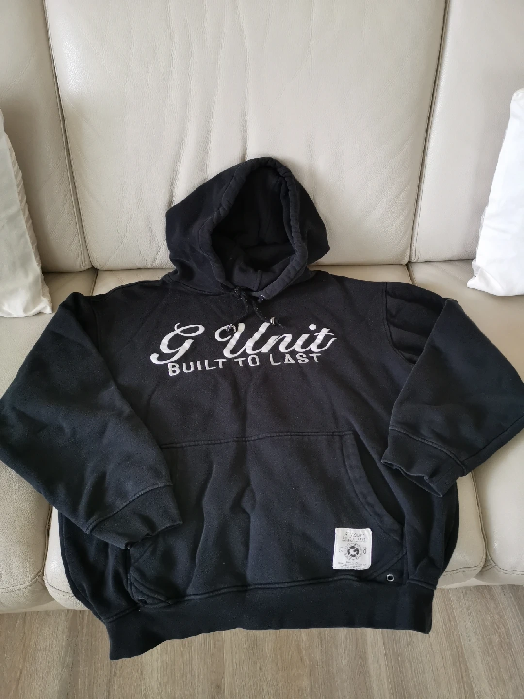 Selling a black G-Unit hoodie. It says 'Built To Last' on the front. Great for staying warm and showing off your style Size is L like new condition. Pet and smoke free home