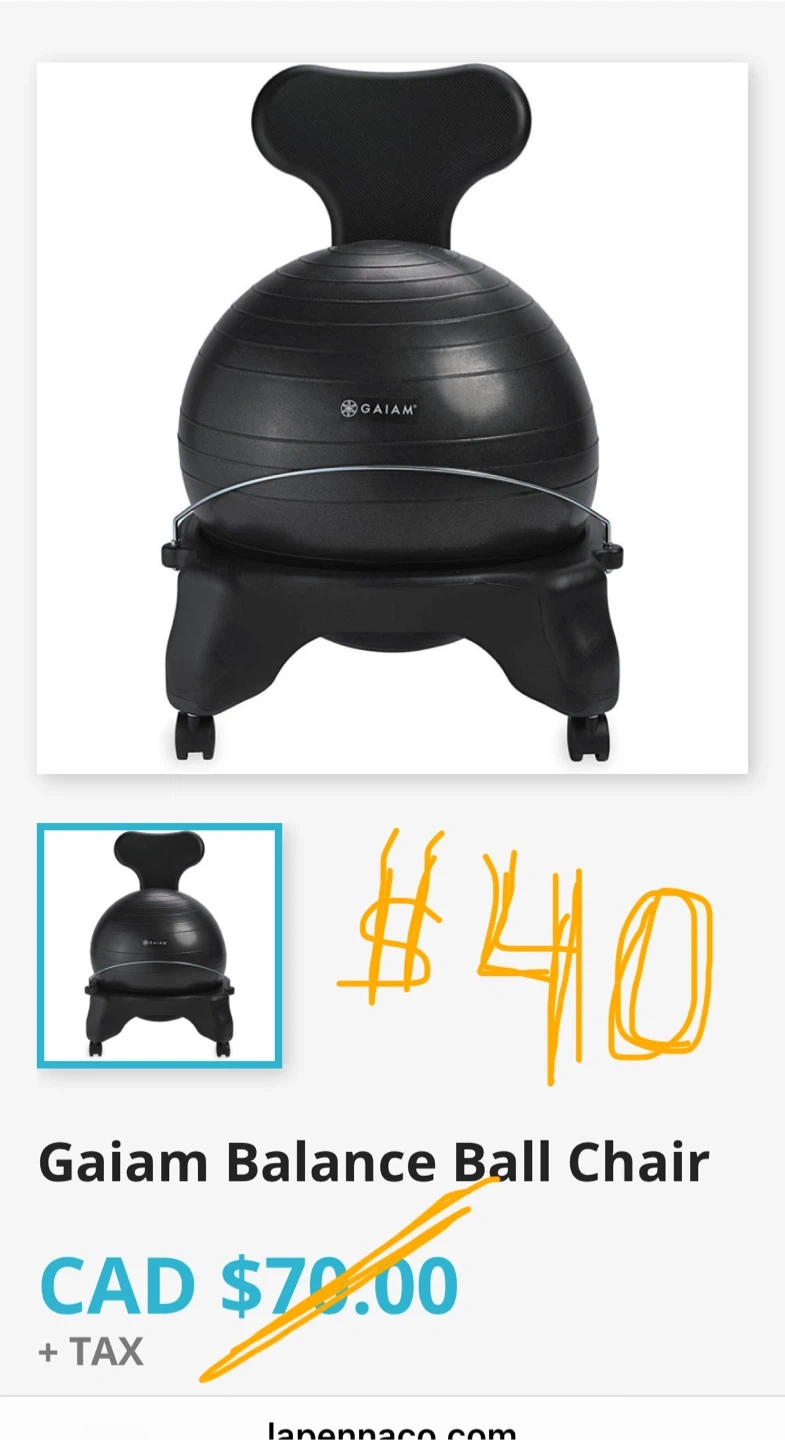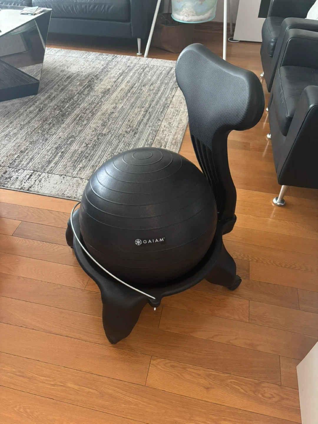 Selling a Gaiam Balance Ball Chair in black. It's in great condition and ready to help you improve your posture and core strength while you work or relax! Originally bought for $70.00