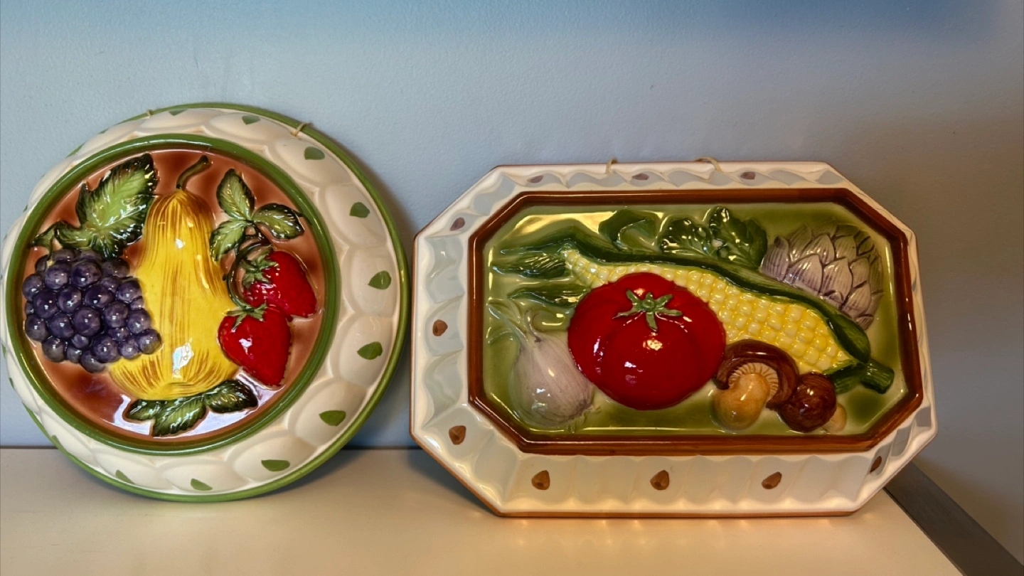Vintage Gailstyn Sutton Ceramic Hand Painted mold wall decor. Set of 2. From the 1970s-80s these round and rectangular moulds are perfect for a Vintage Kitchen or Cottage. The round dish- 8” across x 2 1/2” deep. The rectangular dish- 10” l x 7” w x 3” deep. A small chip on the round mold.Doesn’t take away from the piece. Stamped Japan **Check out my other Vintage Listings** Cash only. Hamilton