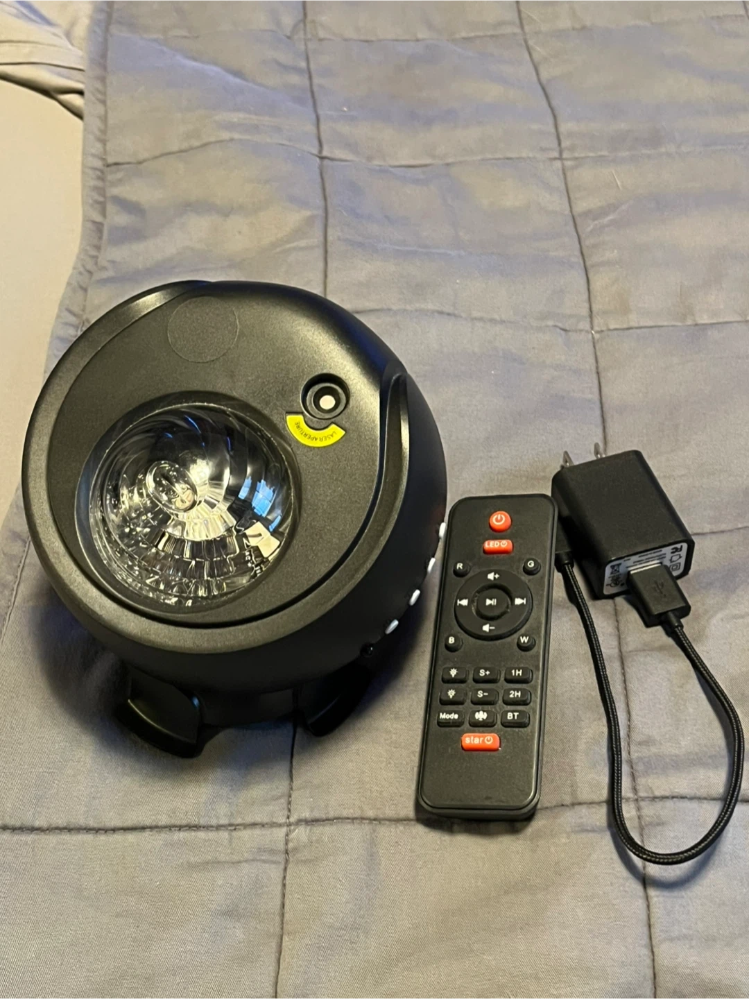 comes with a remote and the power adapter. perfect condition, connects to bluetooth and everything. i just never use it