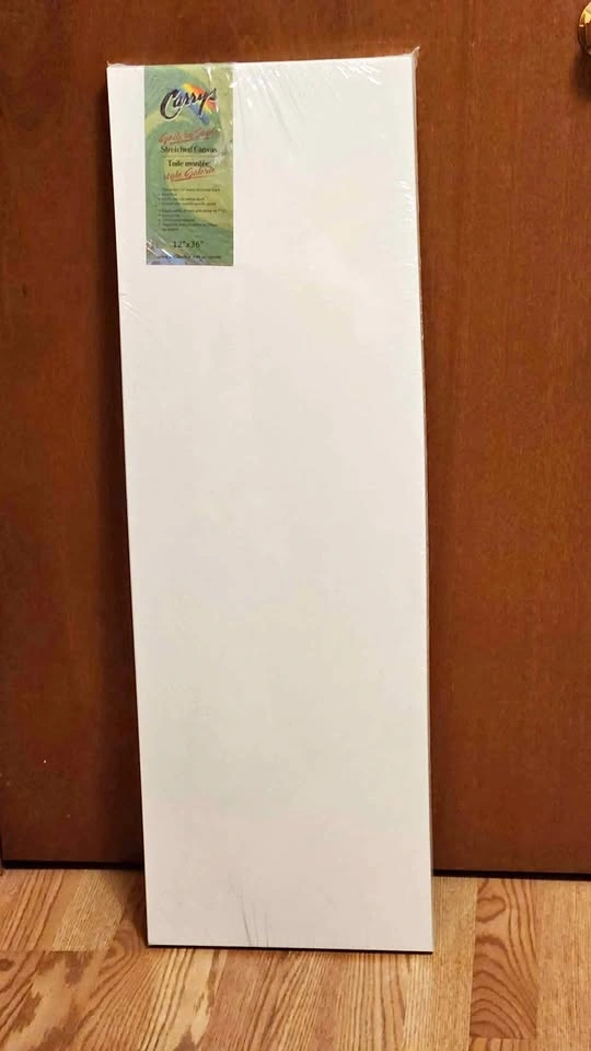Still in plastic. Brand new. 12"x36" Pre dried 1 1/2" stretcher bars Acid free 100% natural cotton duck Primed with quality arcylic gesso